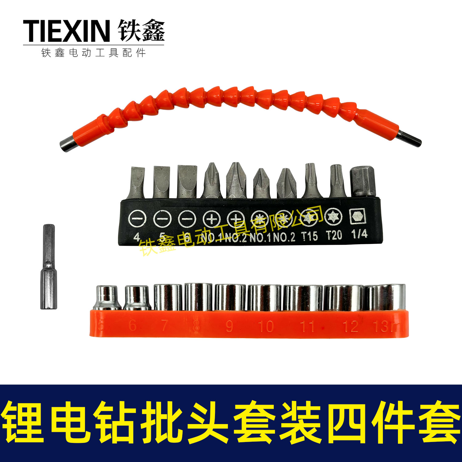 【货号02486】锂电钻批头套装四件套 批头软轴套筒