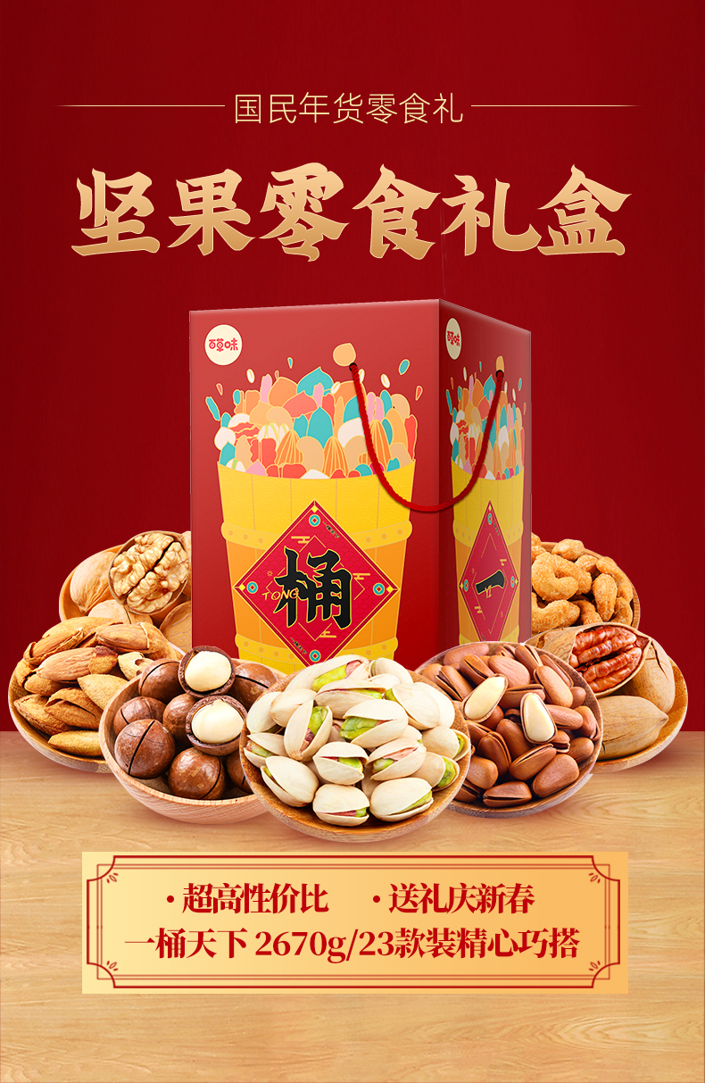 【百草味-坚果大礼包2670g】每日坚果混合干果零食整箱礼盒