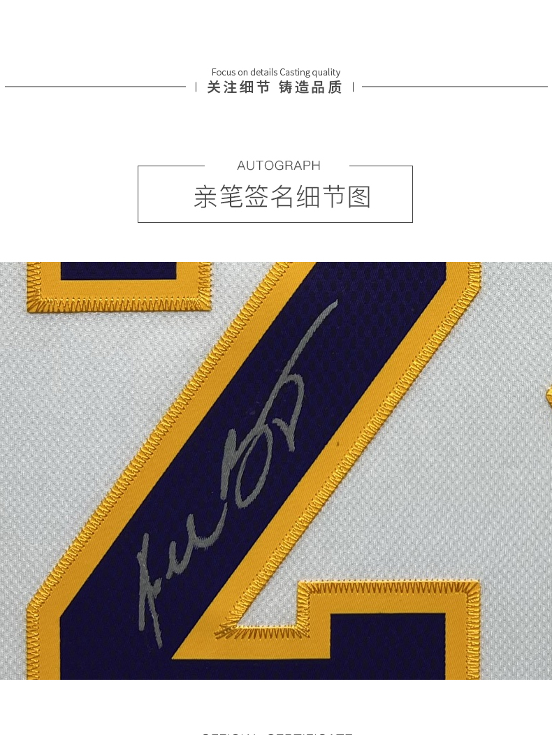收藏系列 科比 湖人队24号白色 亲笔签名球衣