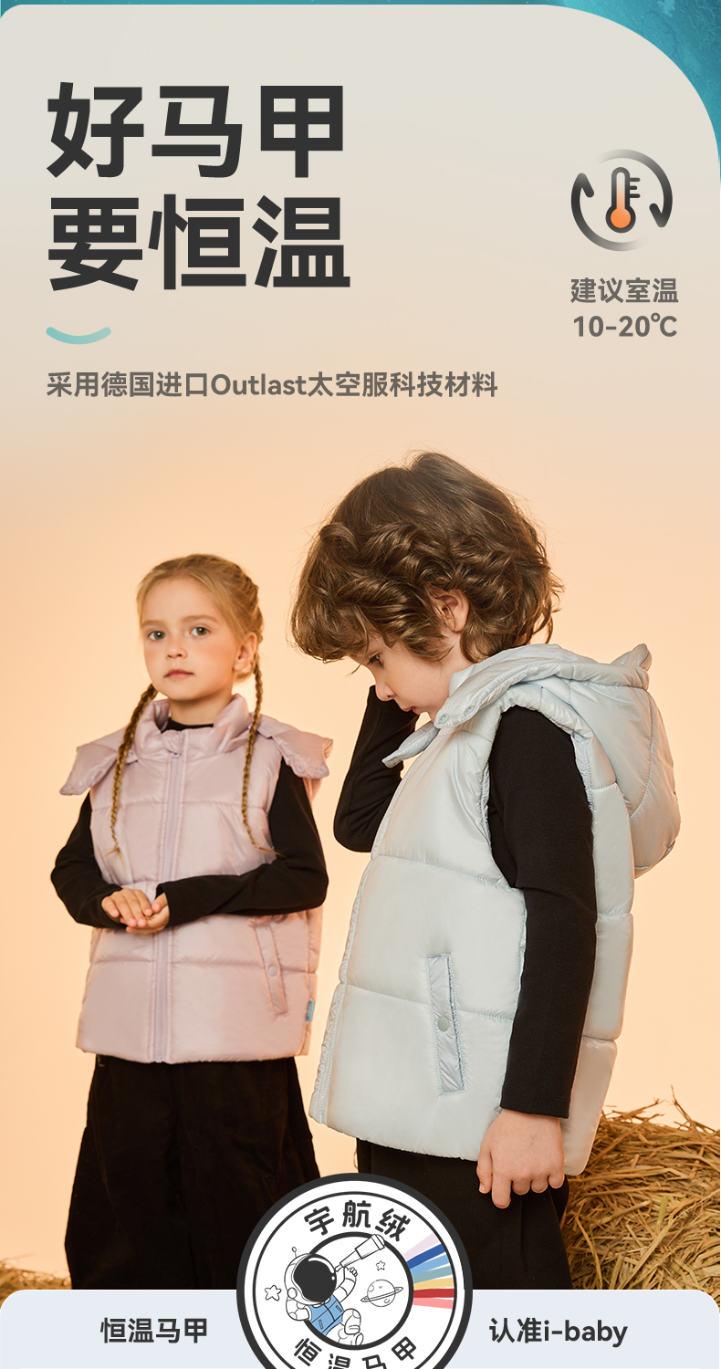 【秒杀 99元】i-baby恒温宇航绒连帽儿童马甲 秋冬内搭外穿保暖马甲
