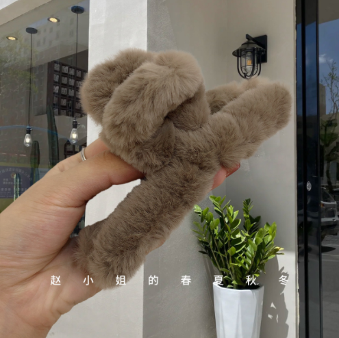 熙世界韩国秋冬新款毛茸茸抓夹大号温暖后脑勺盘发夹仿兔毛发抓鲨鱼夹女