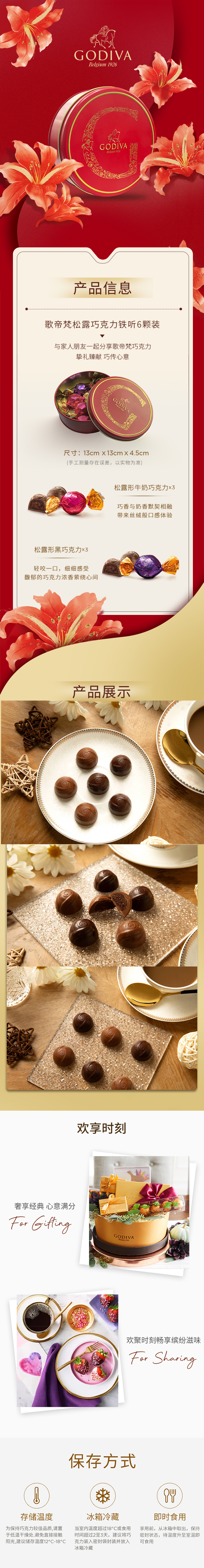 歌帝梵69型精选松露形巧克力铁听6颗装60g(松露牛奶巧克力*3颗、松露黑巧克力*3颗)