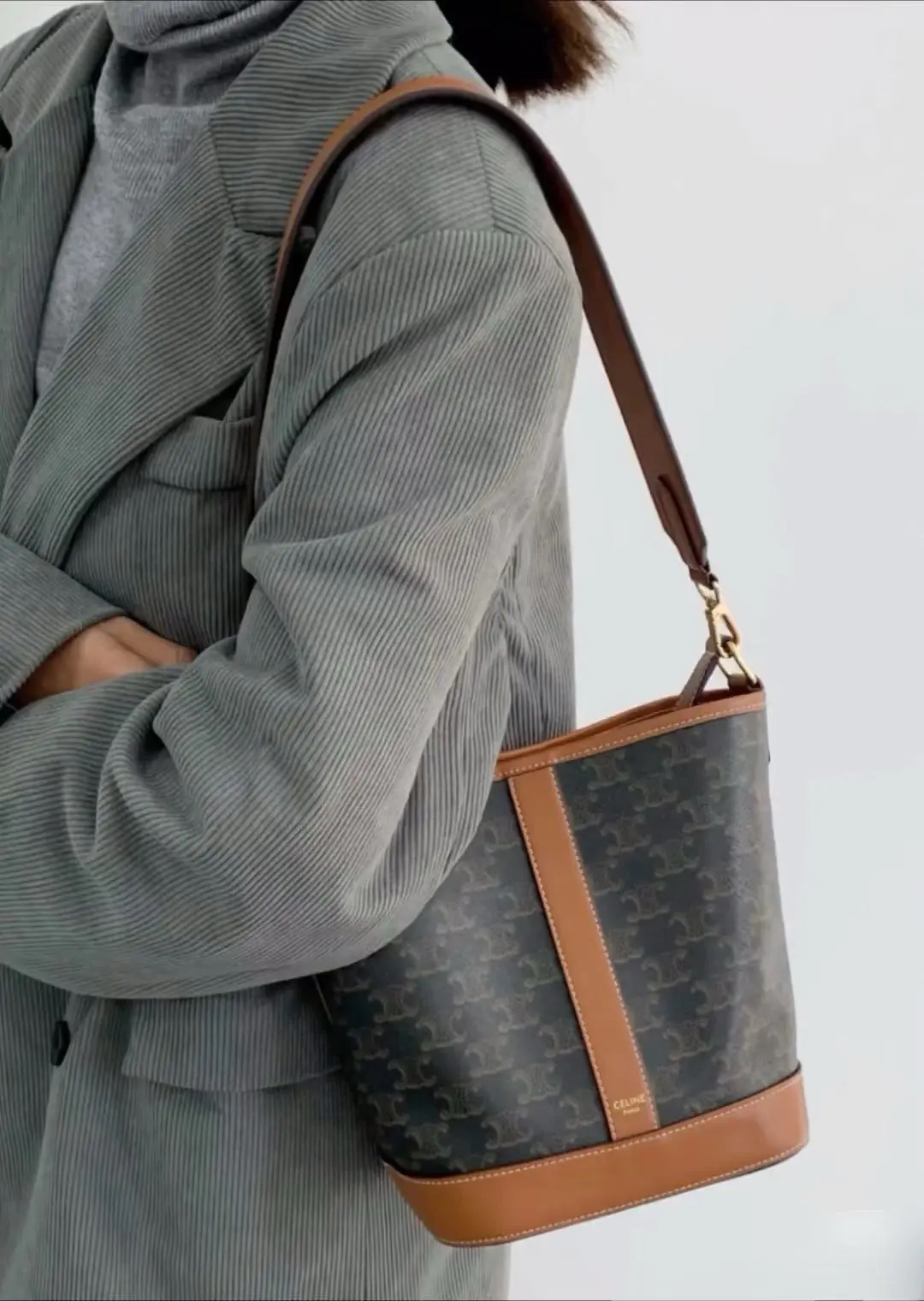 【商品详情】正品二手 Celine 小号 老花 水桶 斜挎包🤎 98新 18×22。复古老花永不过时