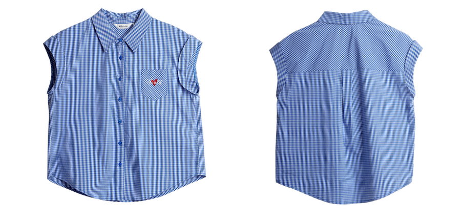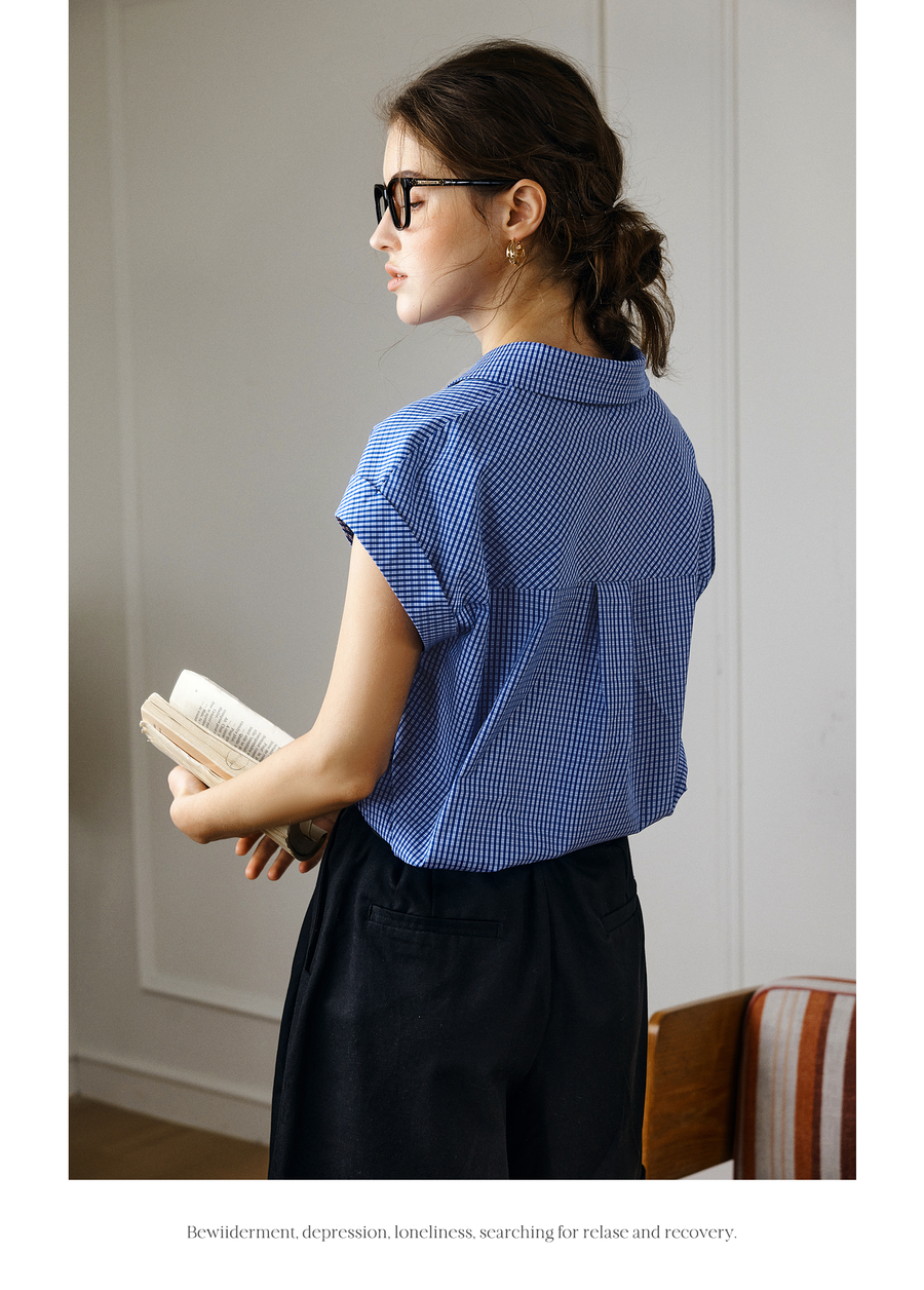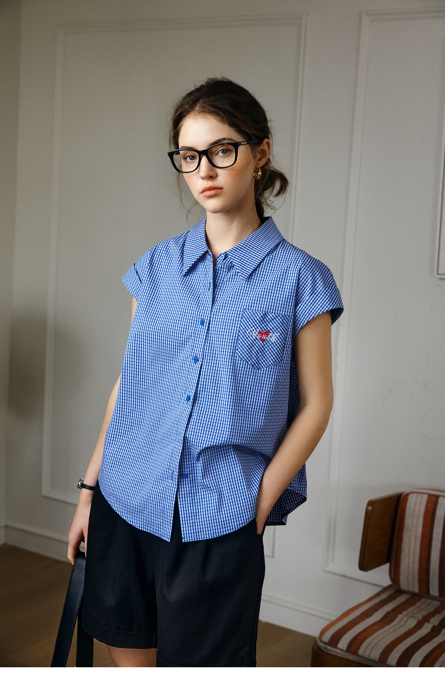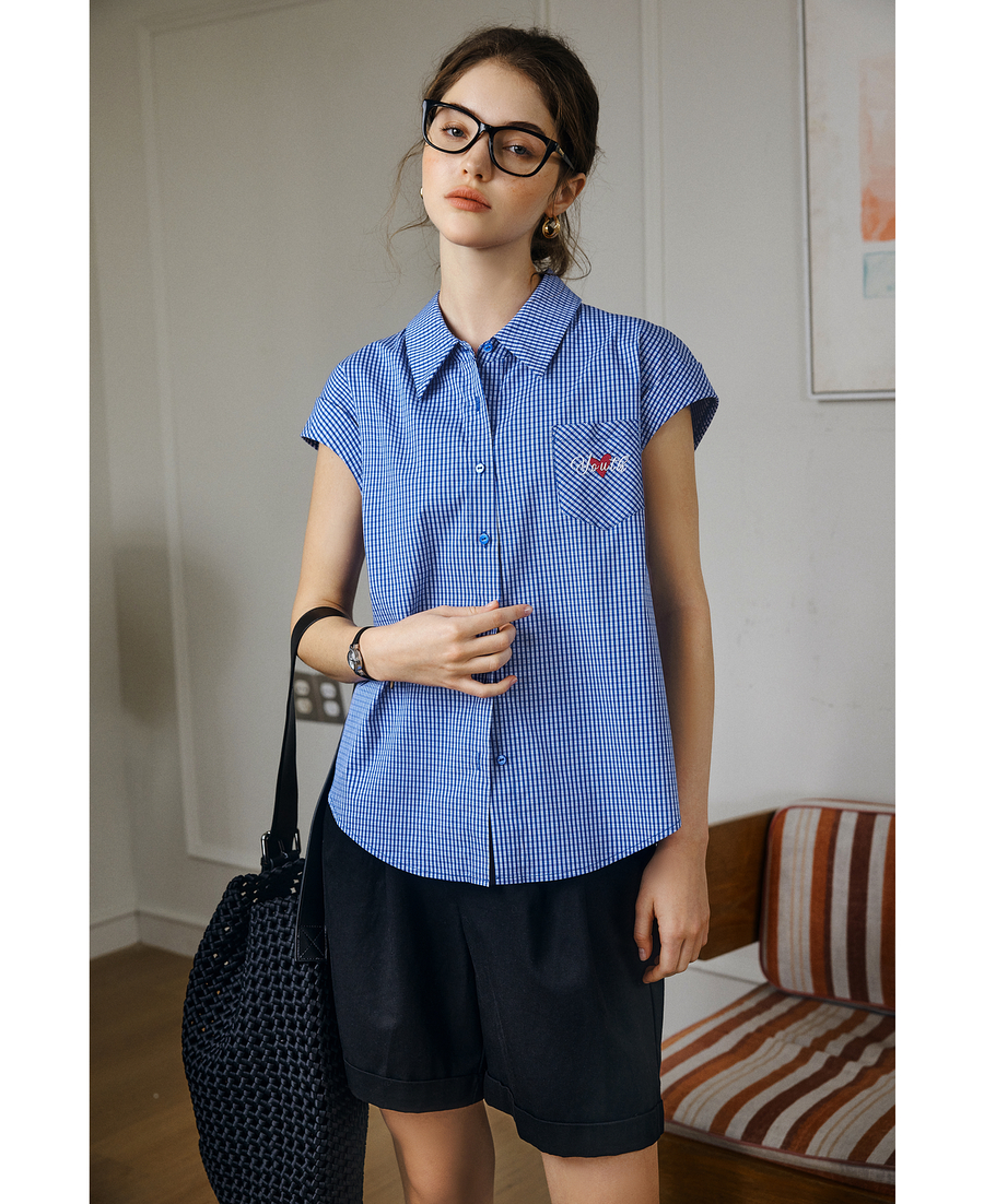 OLrain欧芮儿蓝色格子衬衫女夏季2025年新款通勤高级感连肩衬衣