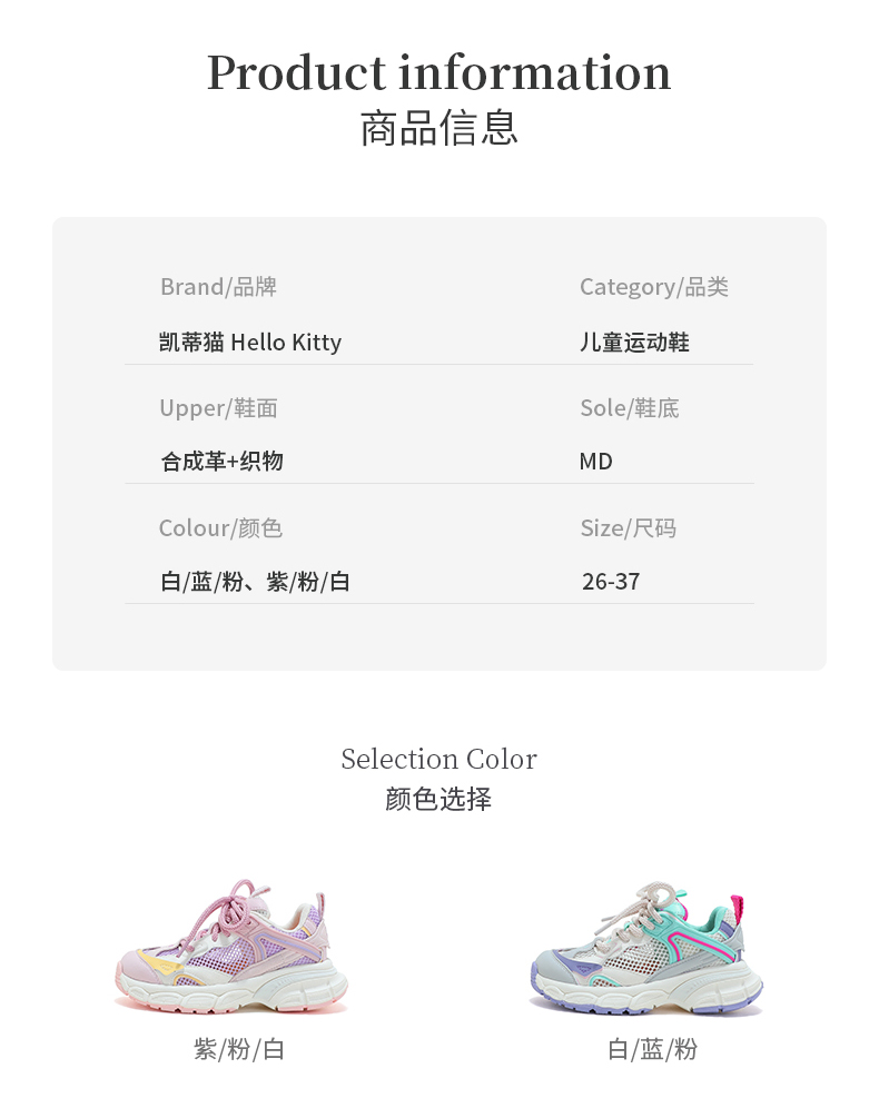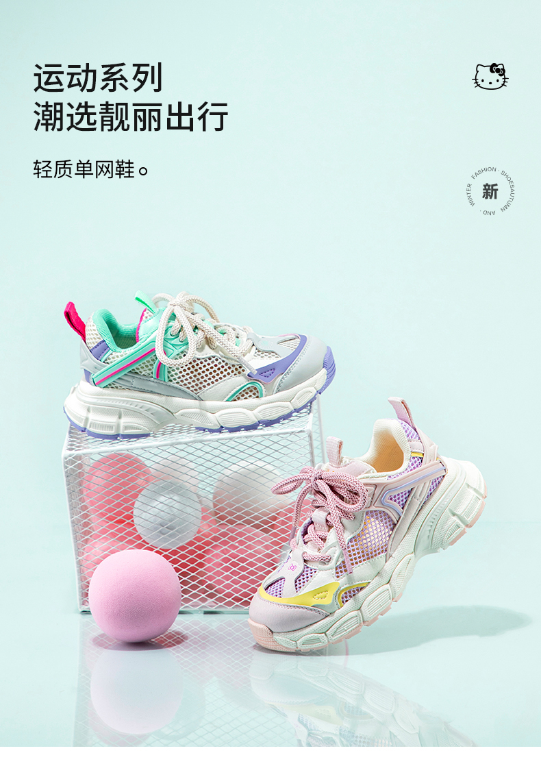 HelloKitty童鞋女童网鞋春夏女孩透气运动鞋儿童潮鞋26-37 K3526837
