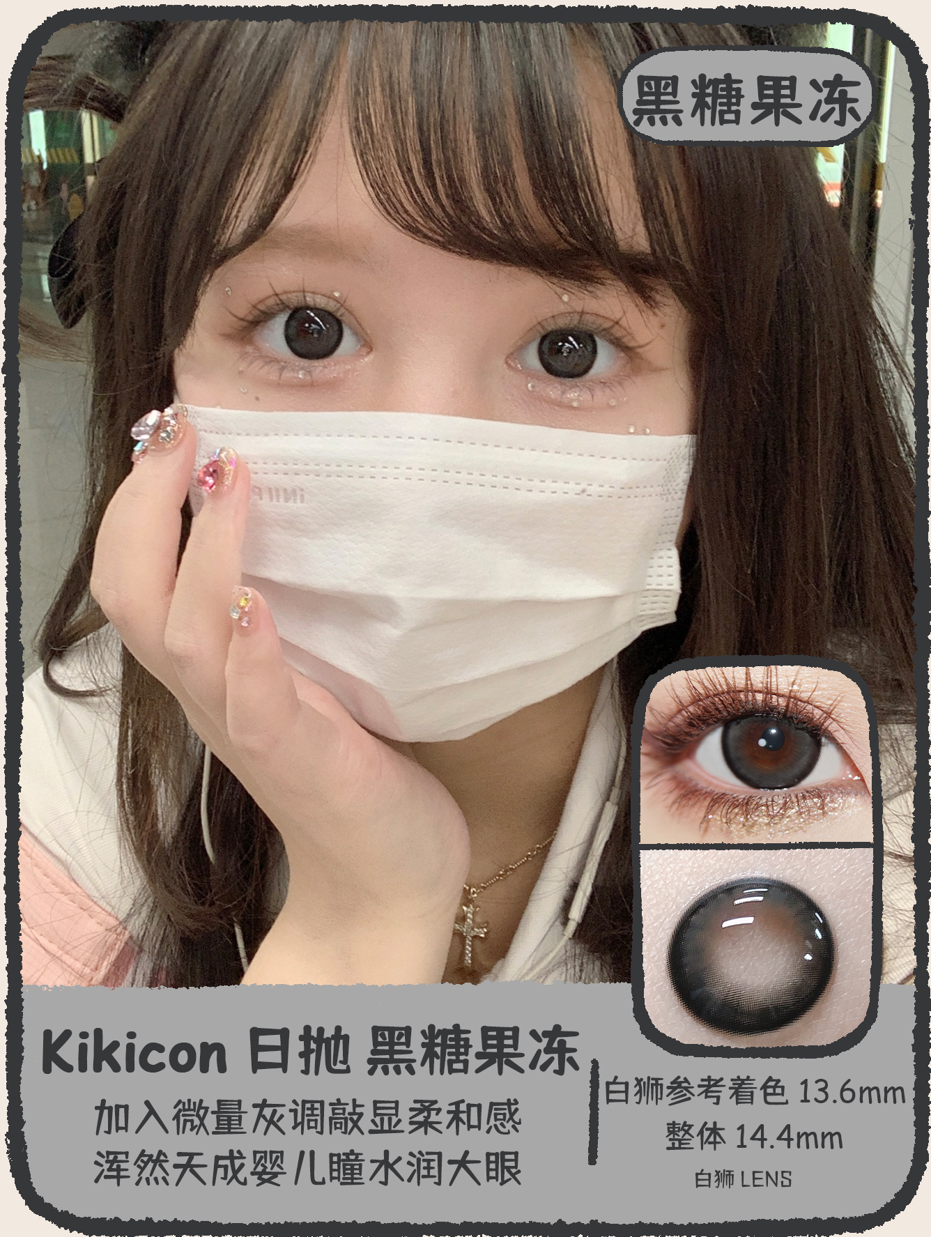 Kikicon旗下 ·蜜糖椰奶&黑糖果冻|14.4mm白狮着色中大直径|日抛 一盒十片装