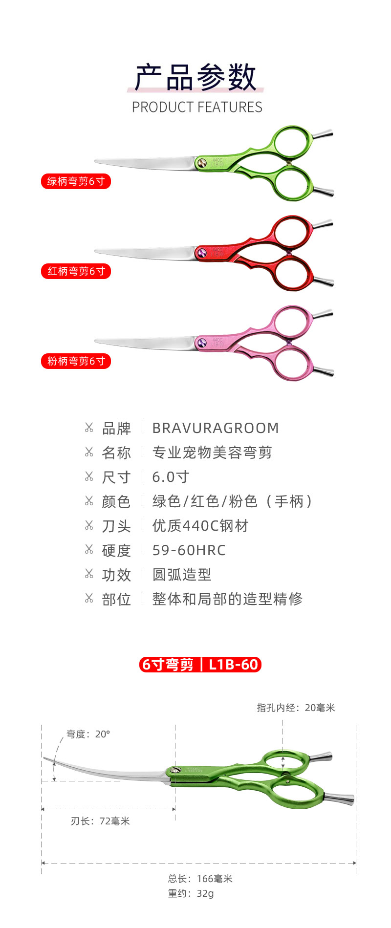 铝柄小弯剪 L1B-60 意大利BRAVURAGROOM宠物美容L系列