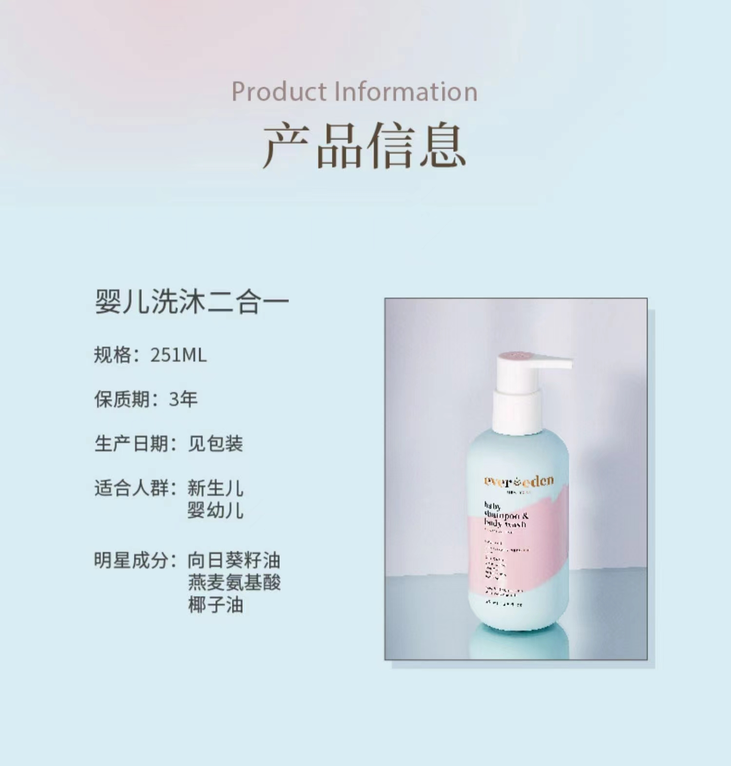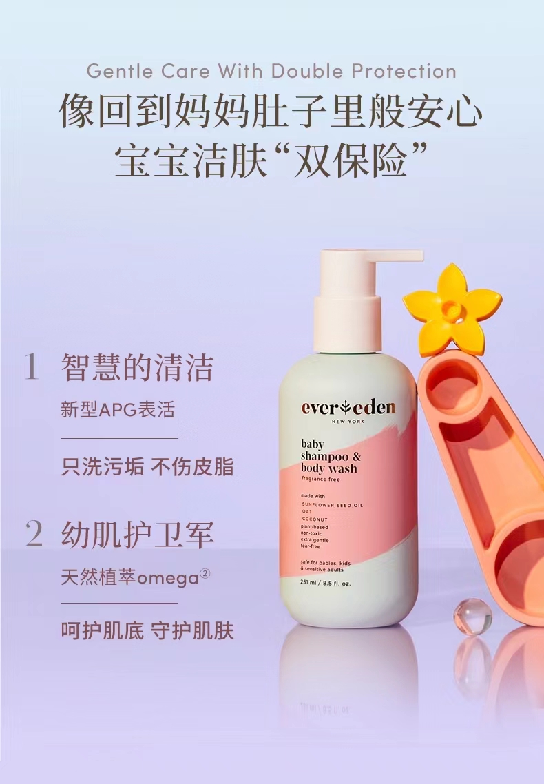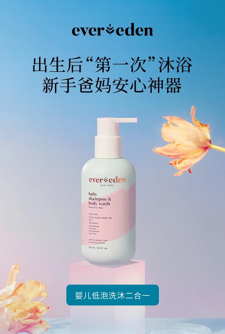 【套组】Evereden安唯伊婴儿全身护理2件套 高保湿面霜50ml+无香身体乳润肤乳200ml/按摩油118ml/无香洗沐251ml