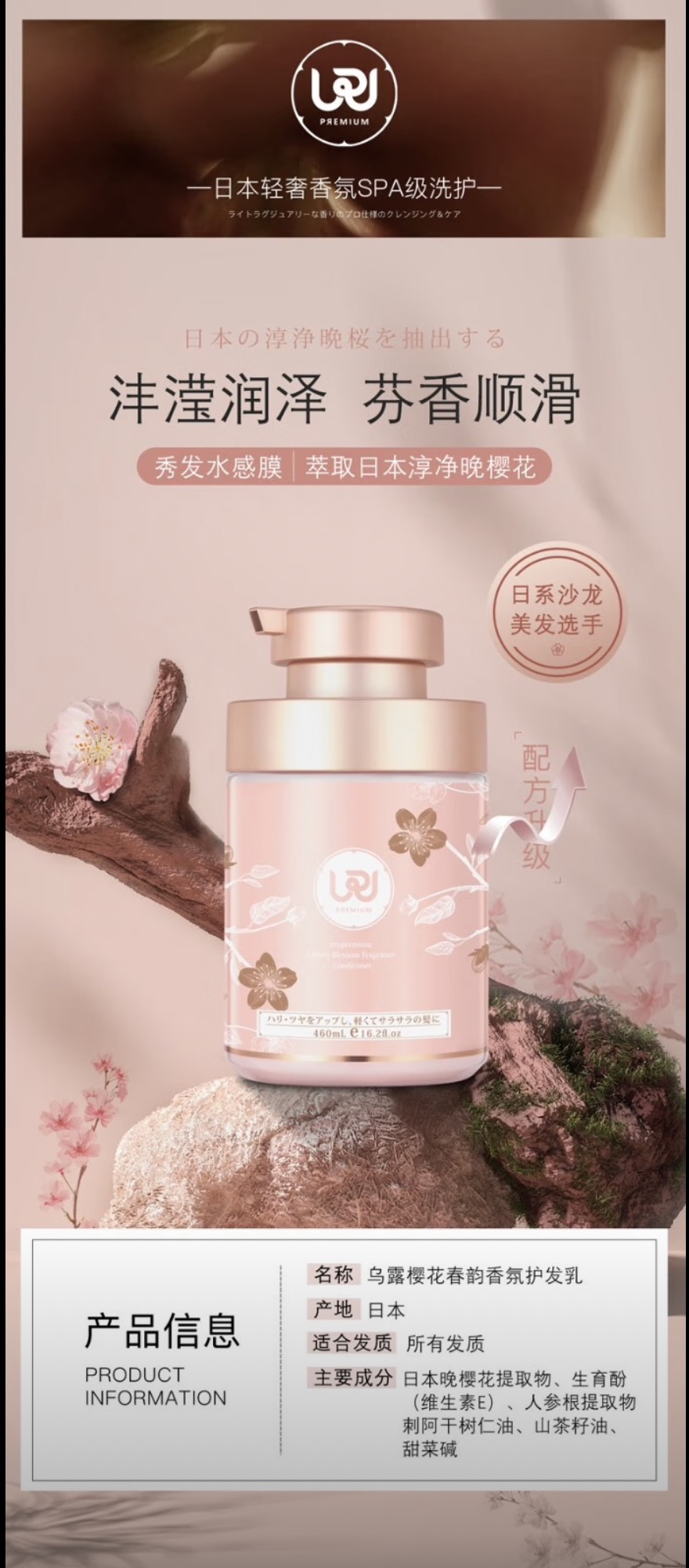 【128元会员福利】乌露樱花春韵香氛护发乳460ml
