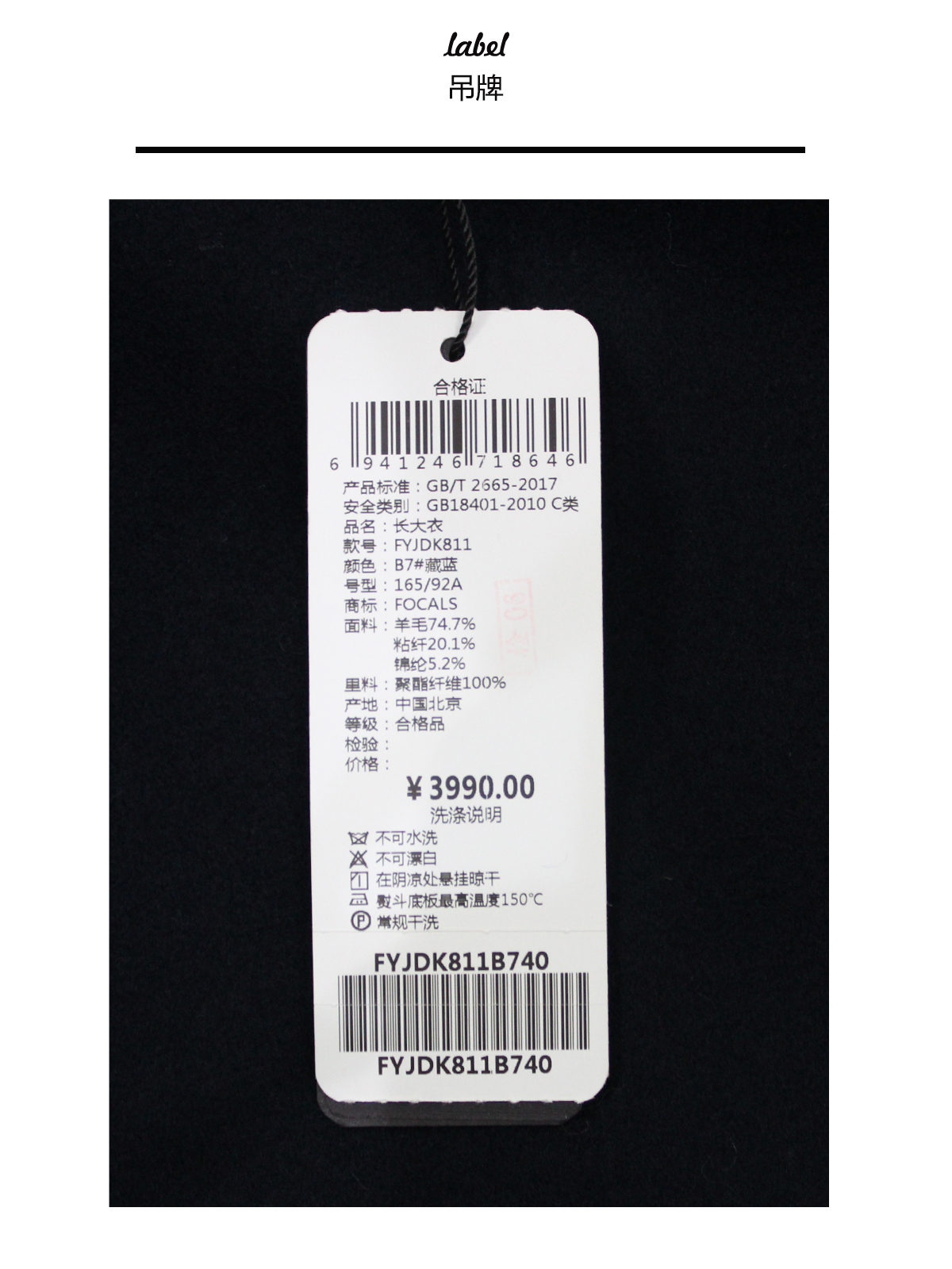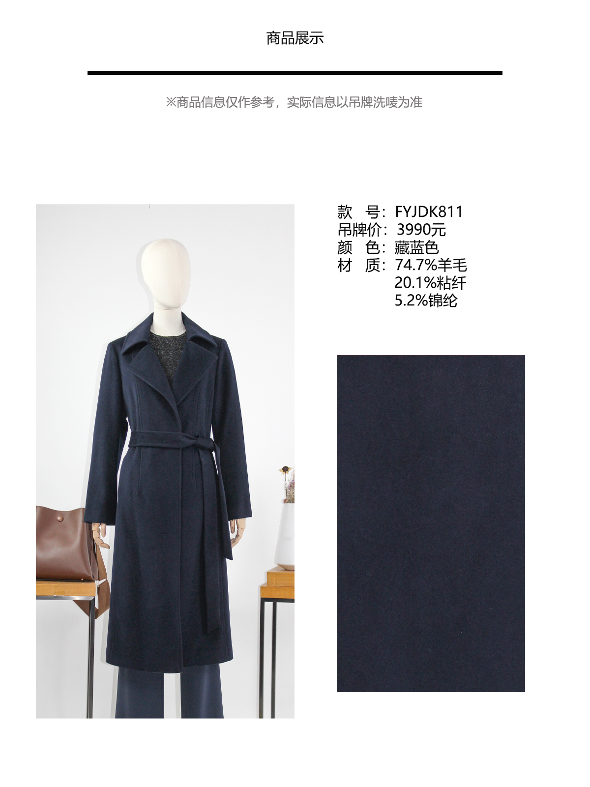 FOCALS福柯斯冬新款修身长款纯色羊毛大衣外套FYJDK811B7