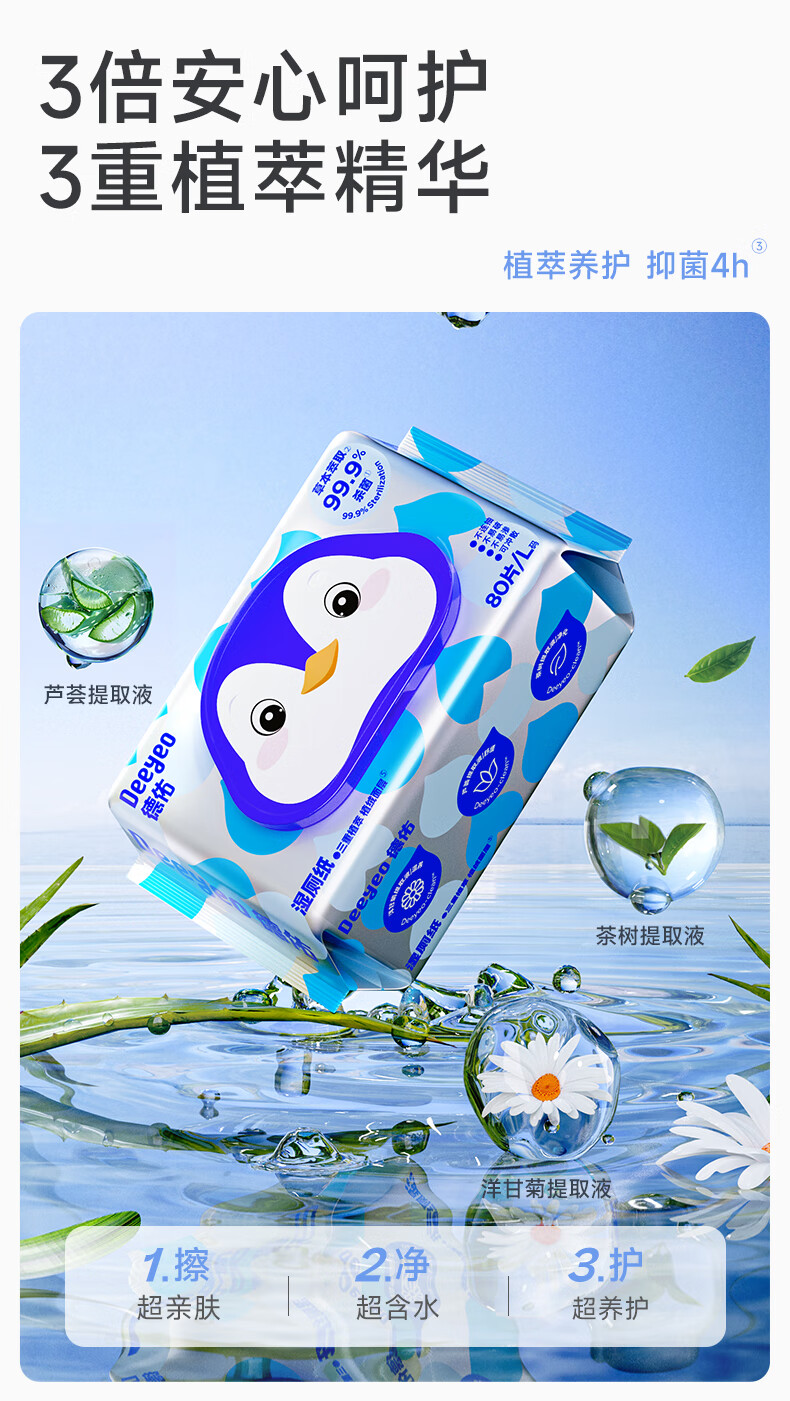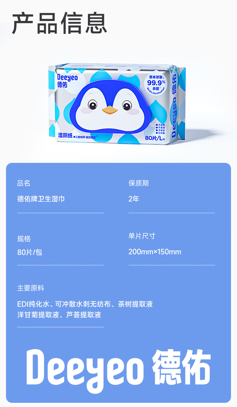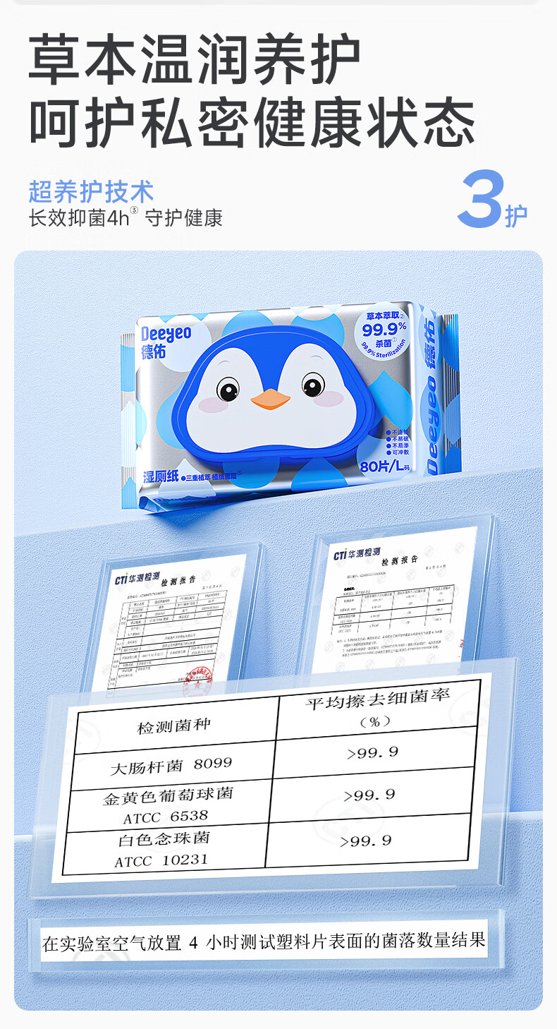 【分仓直发包邮】德佑企鹅湿厕纸A版80片*6包
