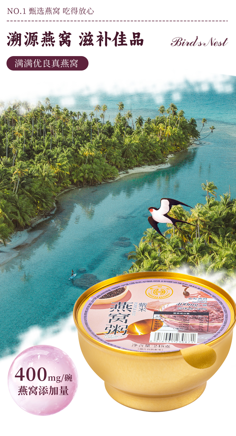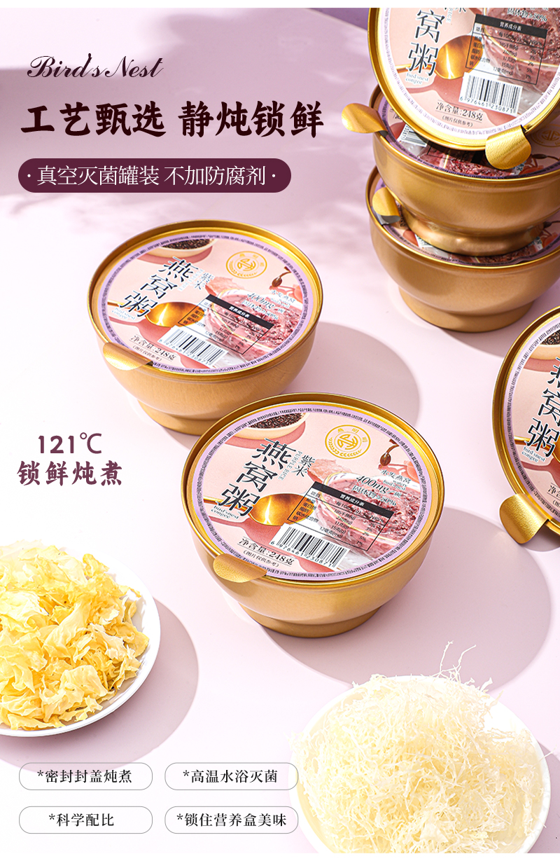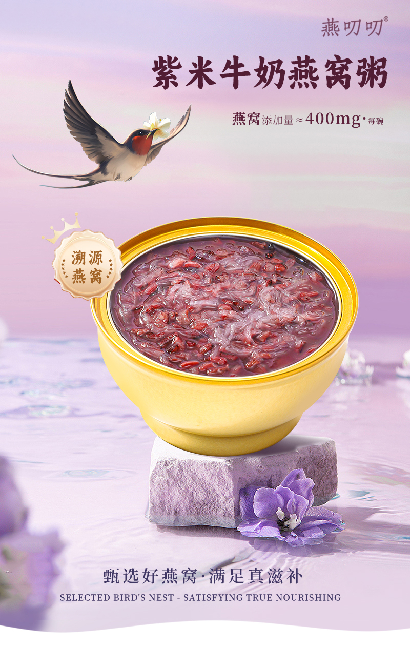 燕叨叨紫米燕窝粥248g*6碗/箱 早餐代餐粥速食粥滋补营养粥年货团购送礼