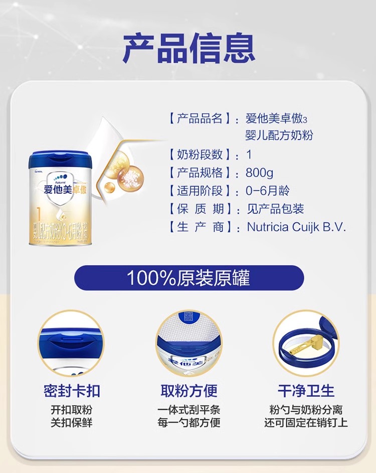 爱他美卓傲婴儿配方奶粉1段800g/ATM-613991