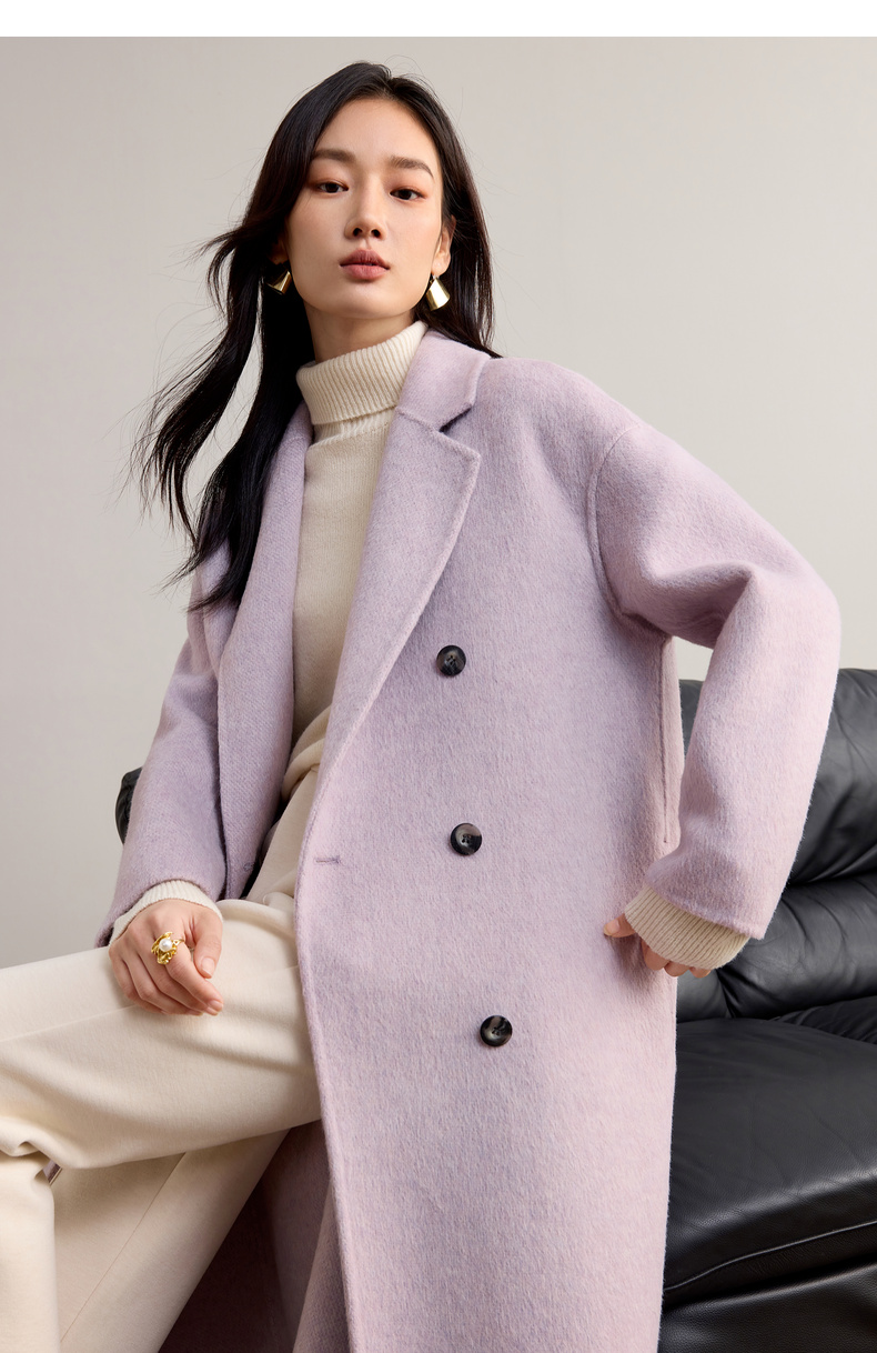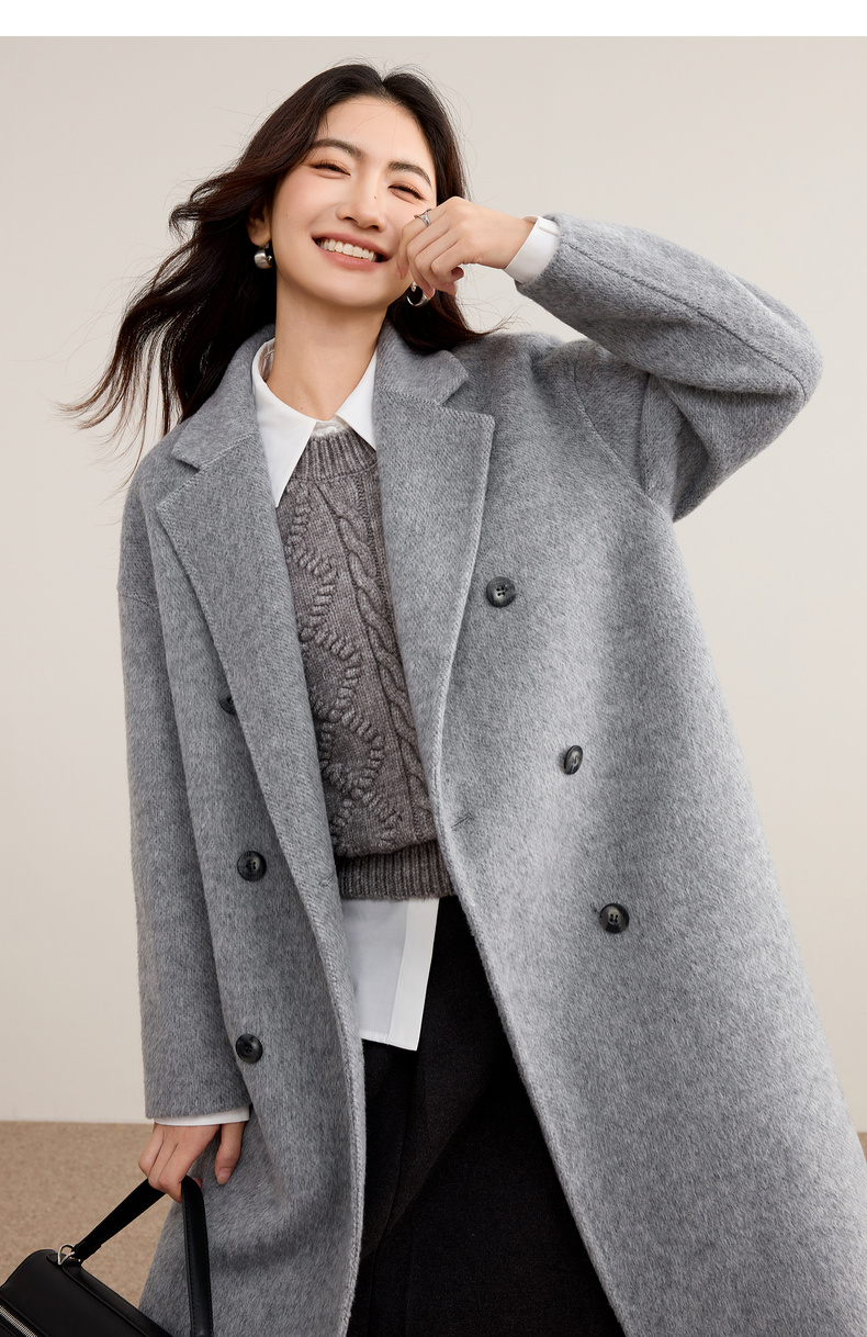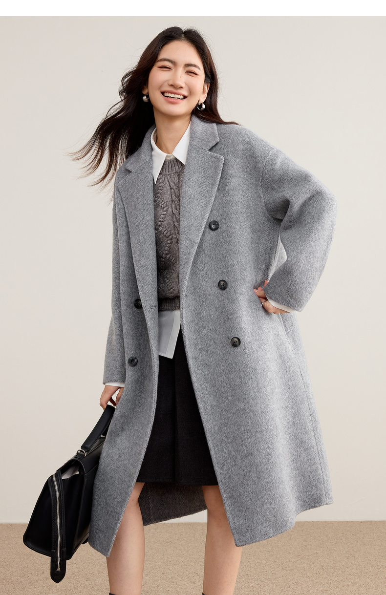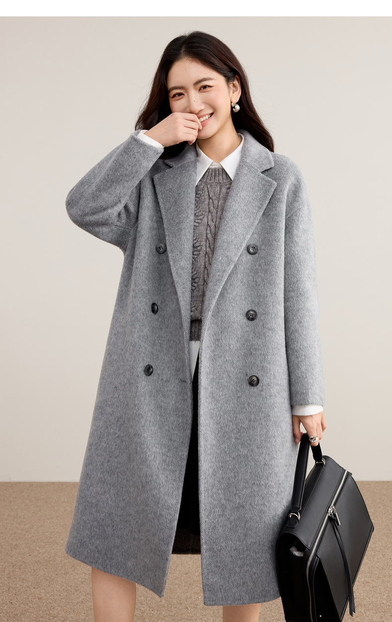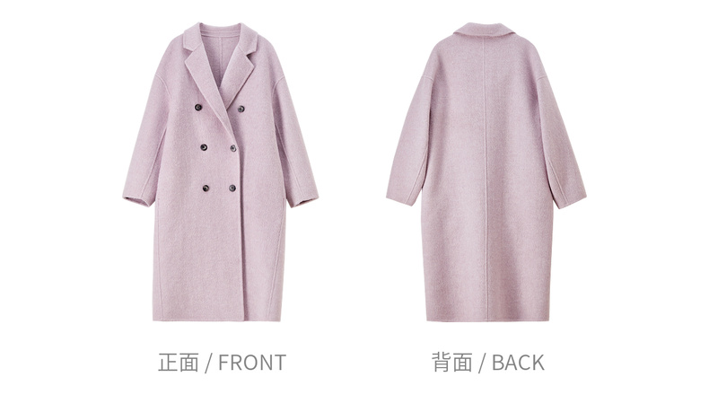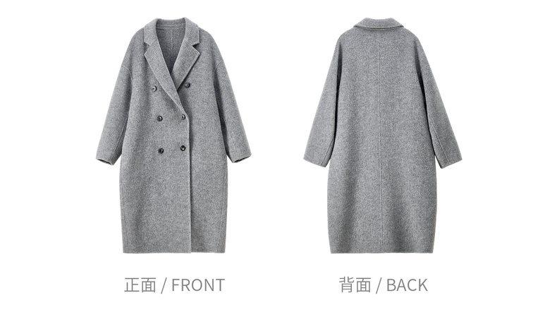 【内购】【70支绵羊毛】英伦风翻驳领双排扣宽松落肩厚保暖长款双面呢大衣-W54OA8789