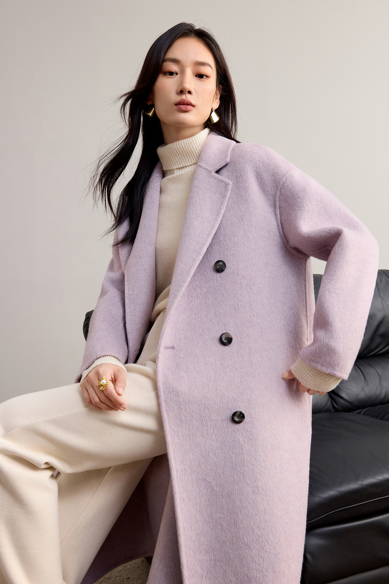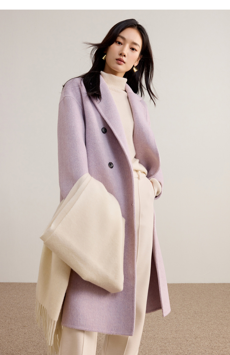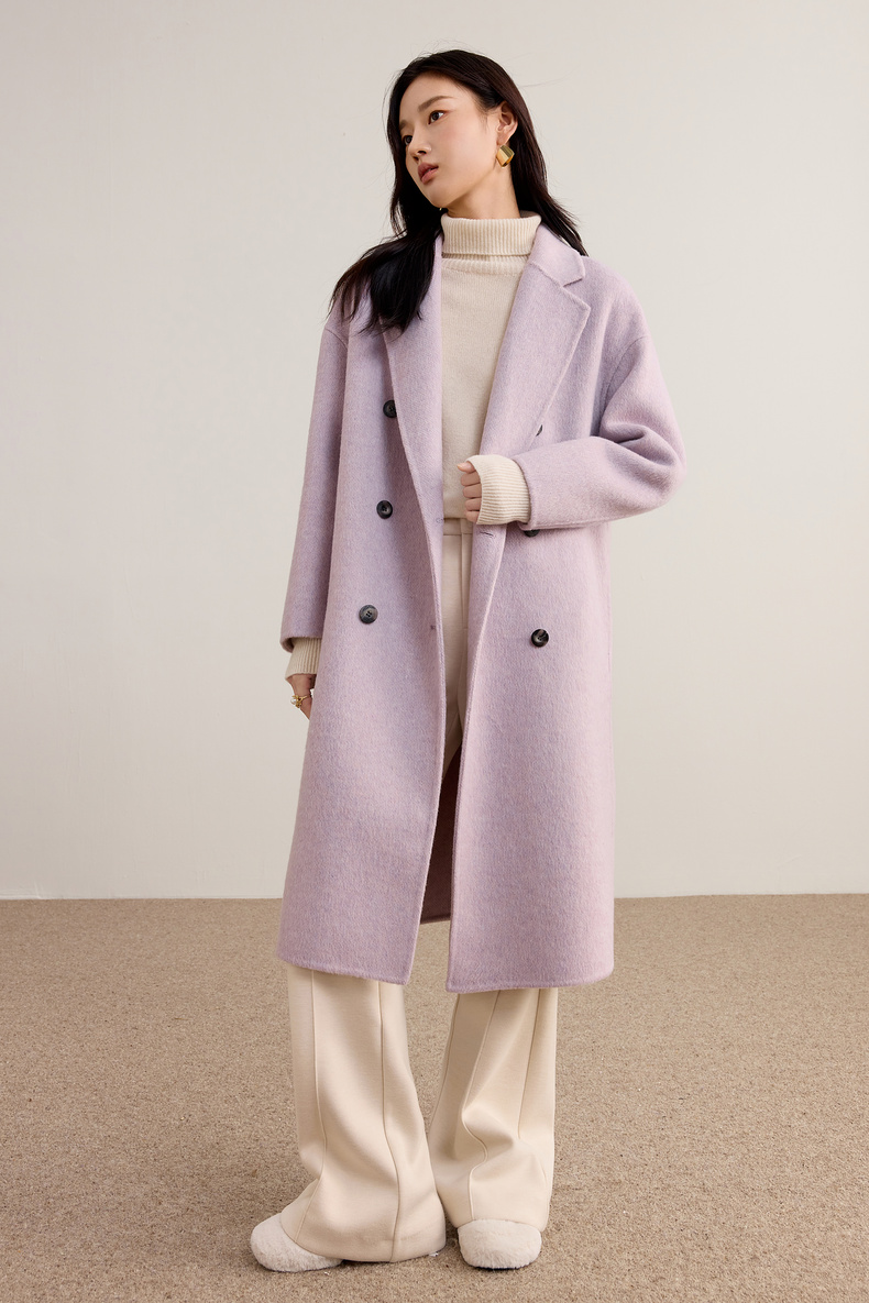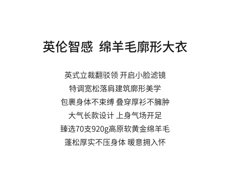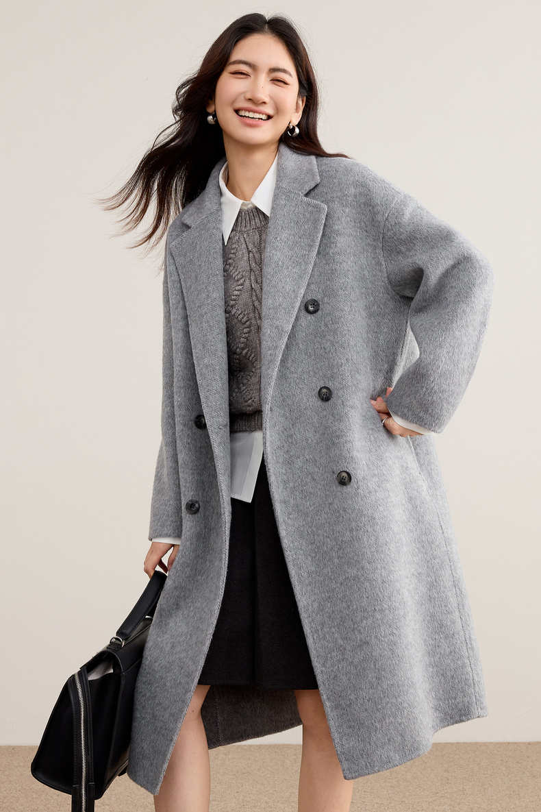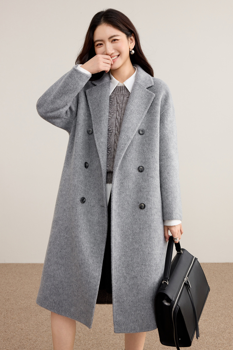 【内购】【70支绵羊毛】英伦风翻驳领双排扣宽松落肩厚保暖长款双面呢大衣-W54OA8789
