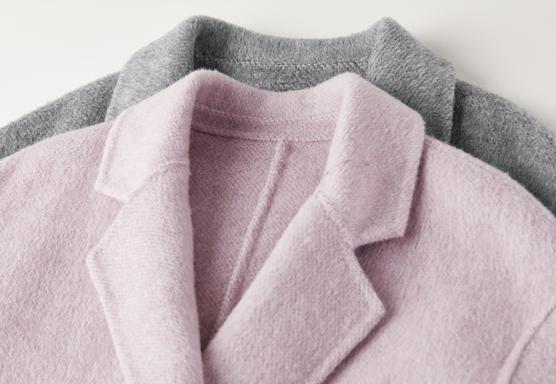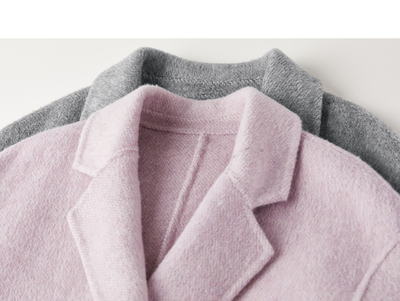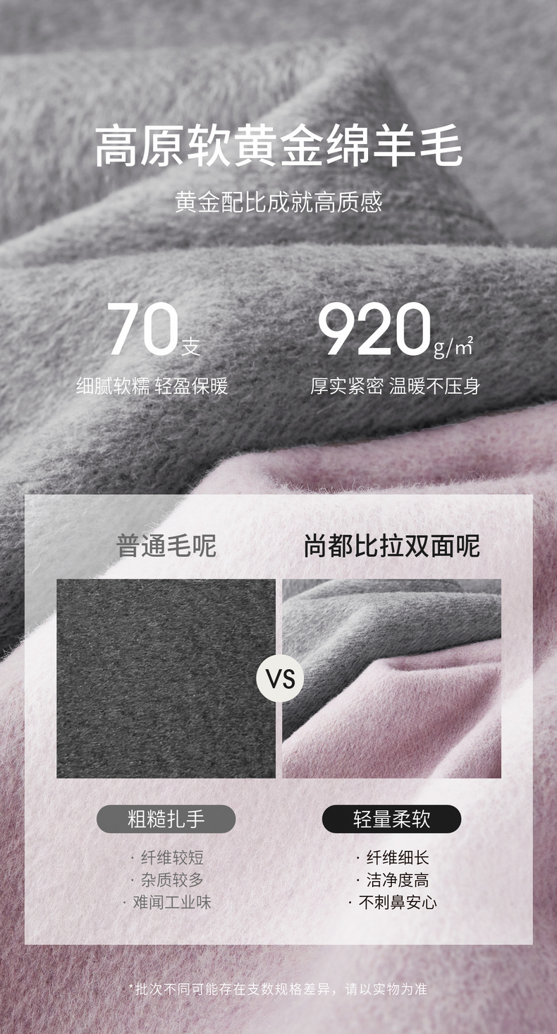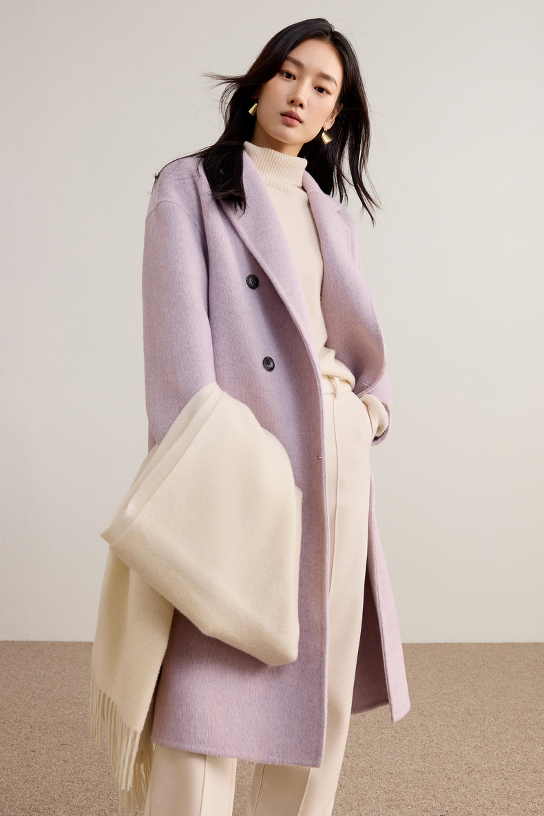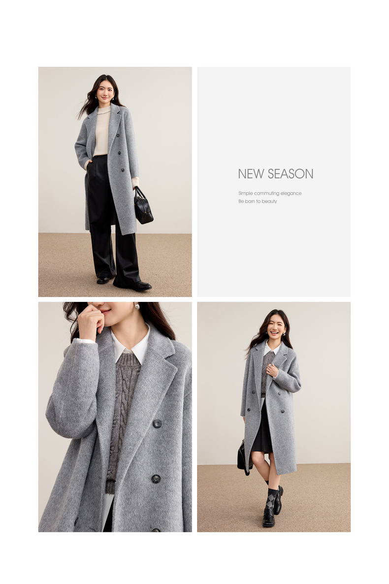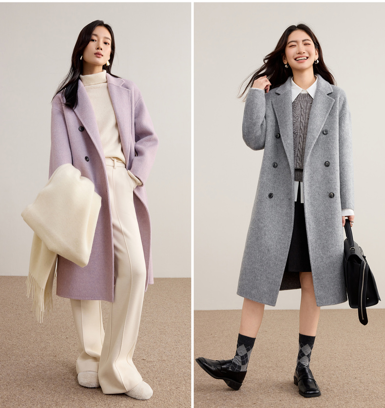【内购】【70支绵羊毛】英伦风翻驳领双排扣宽松落肩厚保暖长款双面呢大衣-W54OA8789