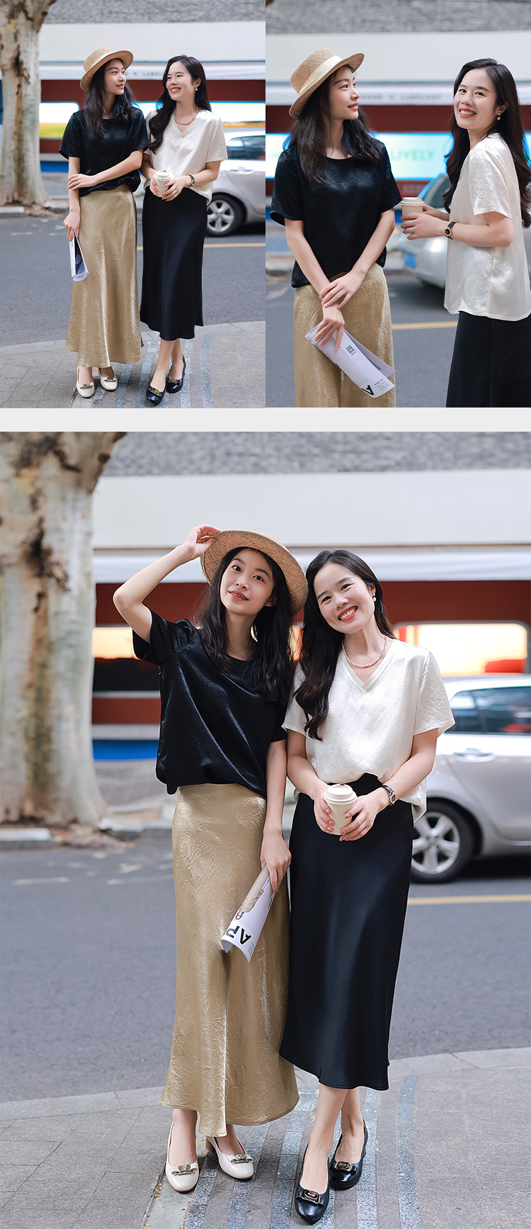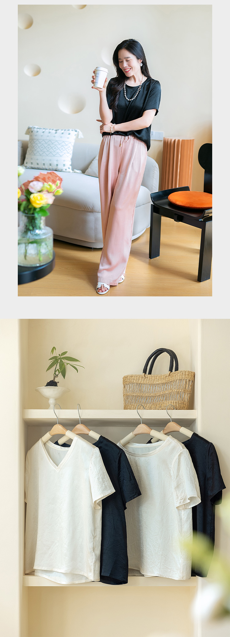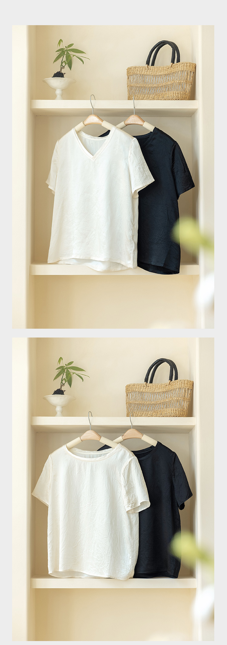 【福利清仓】{圆领| V领}100%醋酸 轻奢肌理 自带光泽短袖T