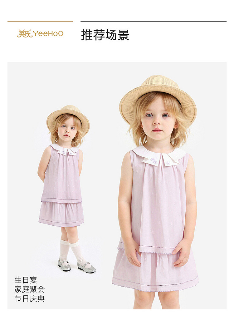 英氏女童裙子夏季小女孩背心裙休闲甜美女生儿童中小童宝宝连衣裙YRLFJ2S027A