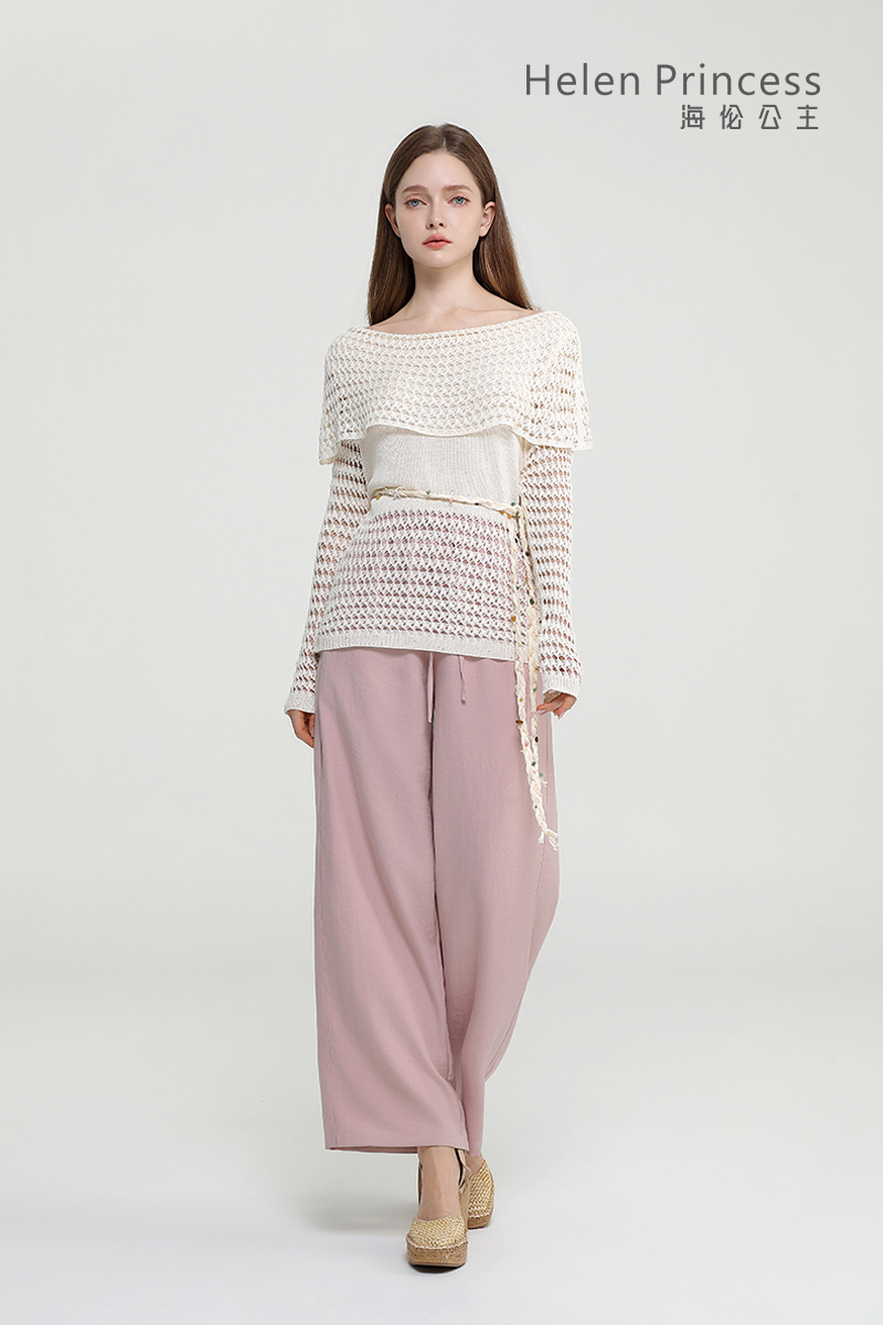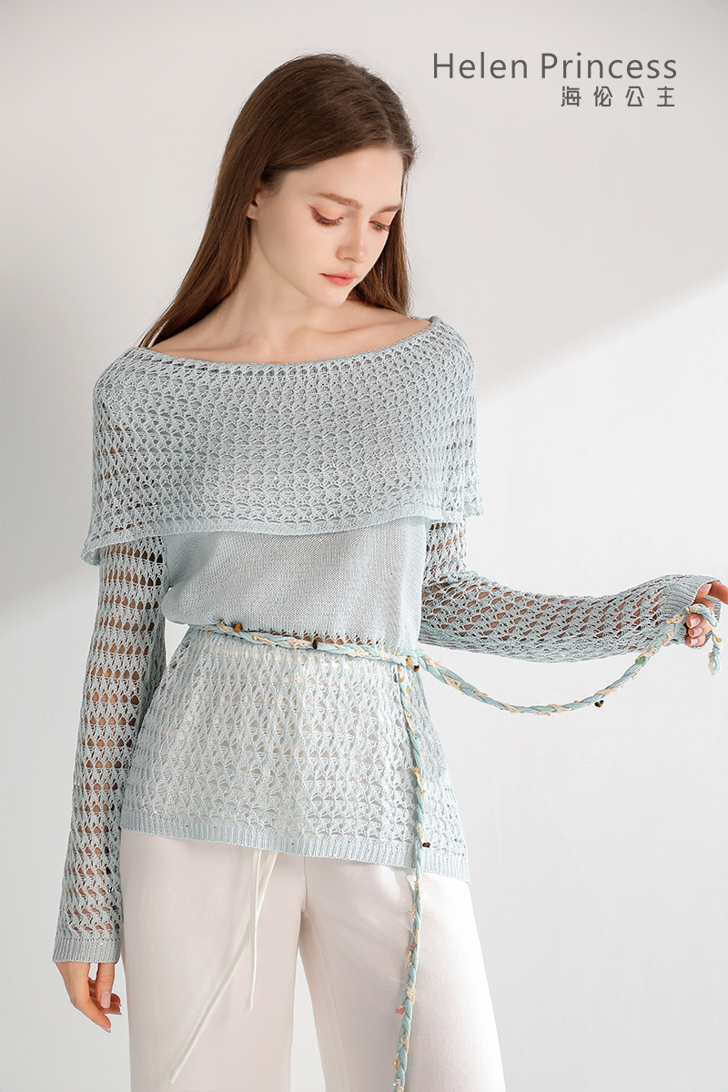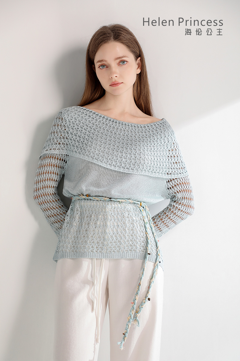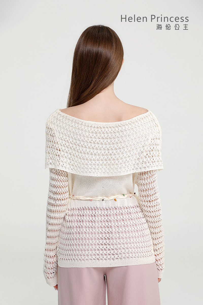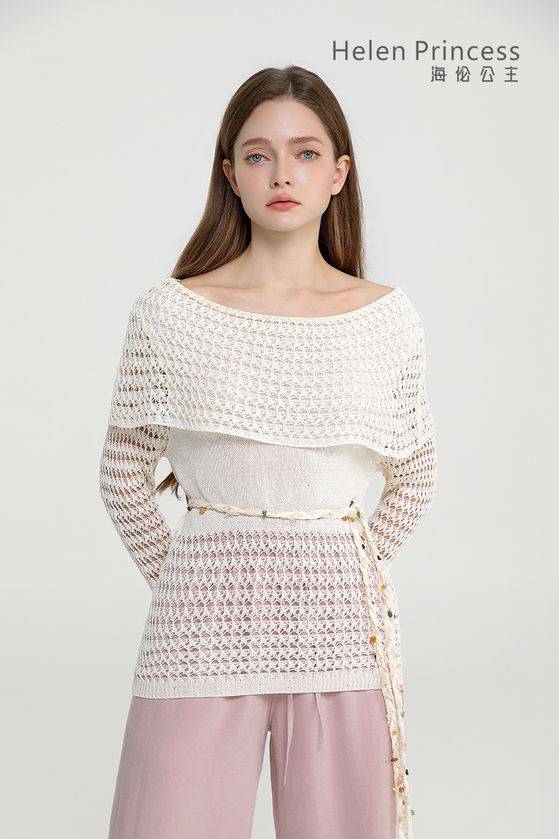 浪漫一字肩设计,大方展露肩颈线条,精美镂空钩花肌理自带通透灵动感,同色系编织腰绳缀以彩珠,随性收腰勾勒曼妙身形,慵懒松弛又充满度假氛围感,演绎温柔仙气,适配多种穿搭场景。
