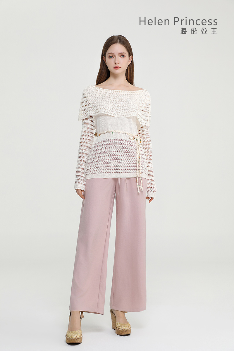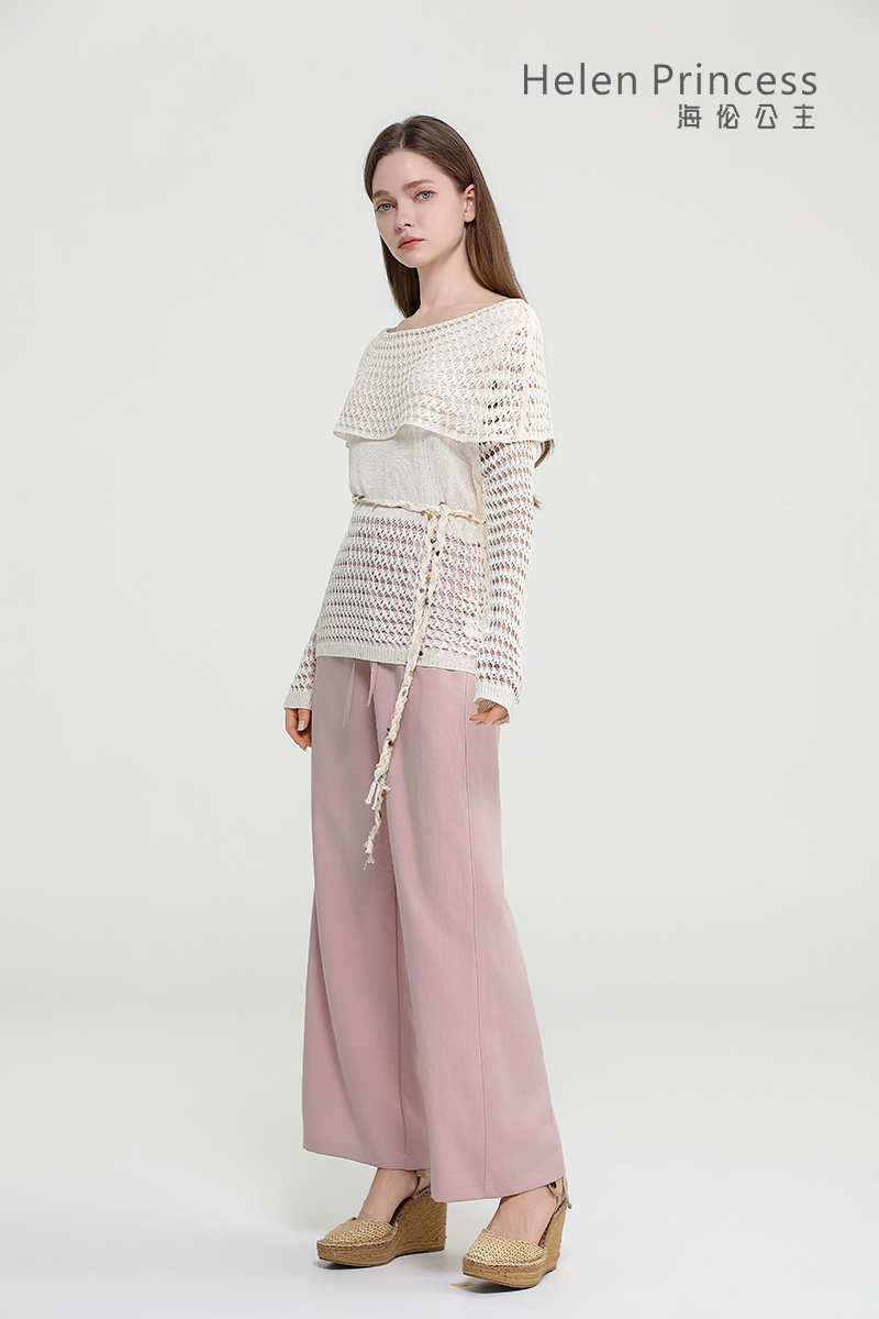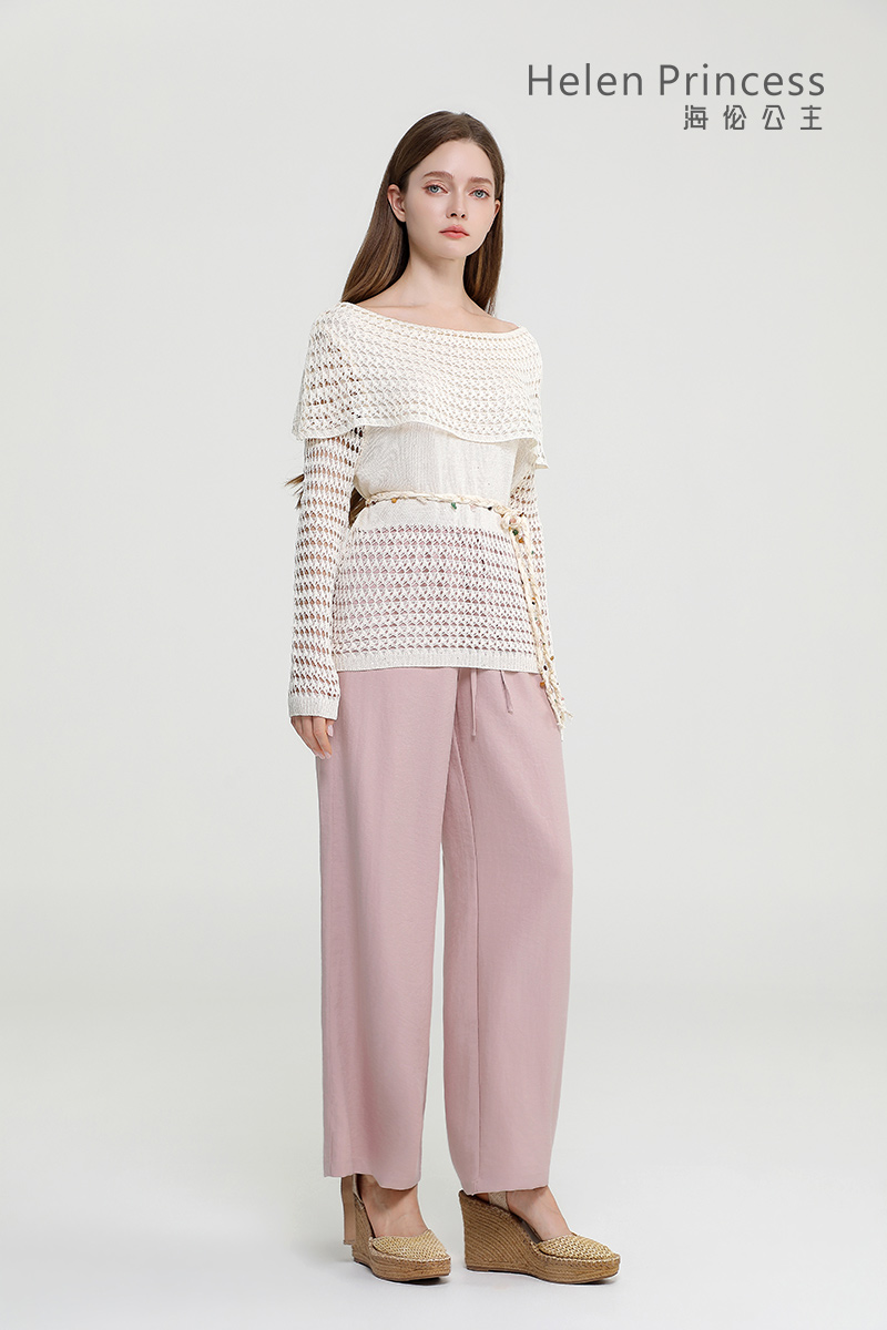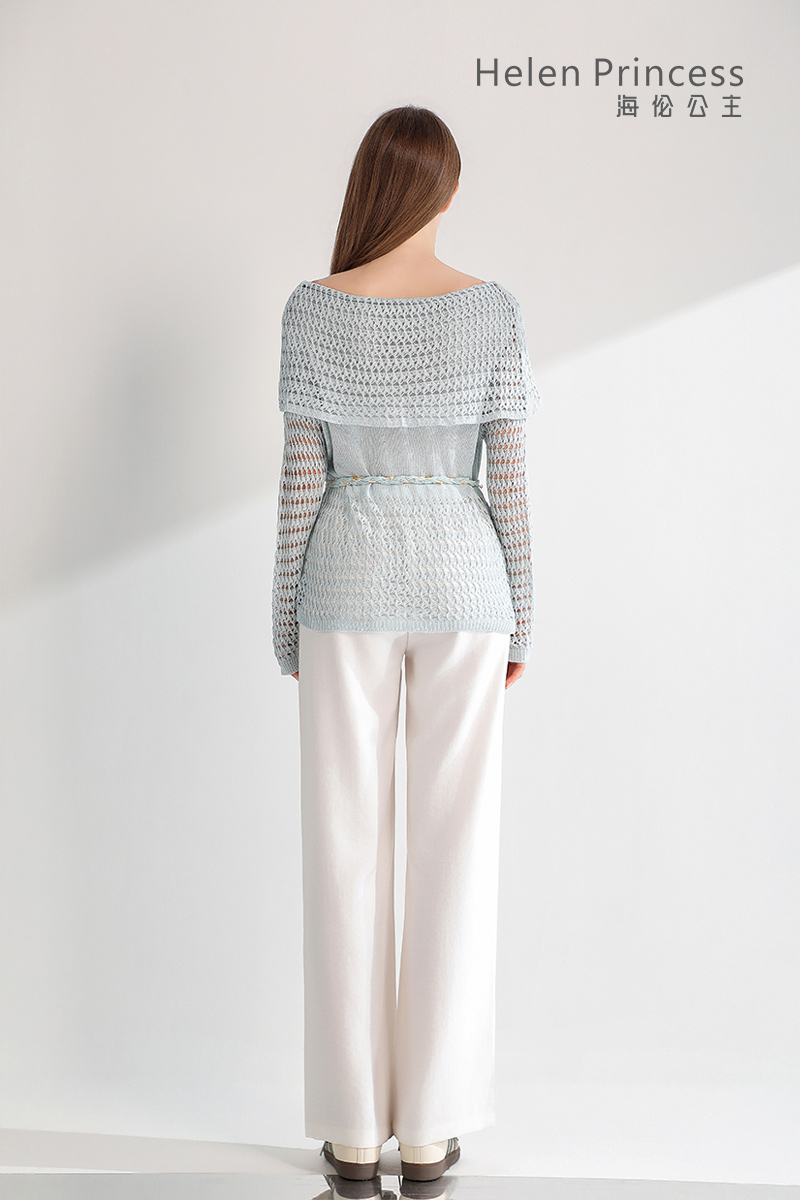 浪漫一字肩设计,大方展露肩颈线条,精美镂空钩花肌理自带通透灵动感,同色系编织腰绳缀以彩珠,随性收腰勾勒曼妙身形,慵懒松弛又充满度假氛围感,演绎温柔仙气,适配多种穿搭场景。