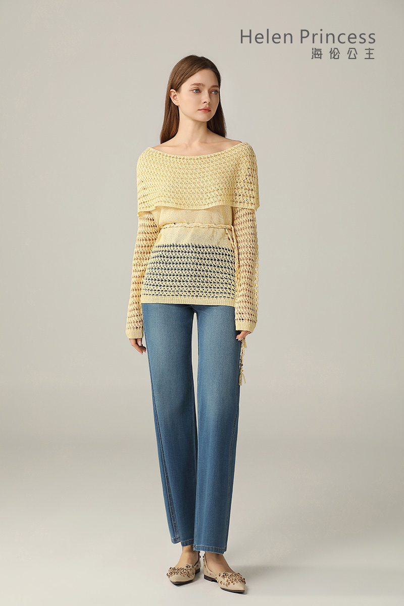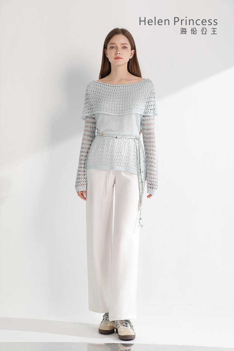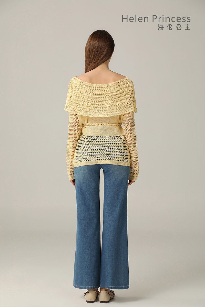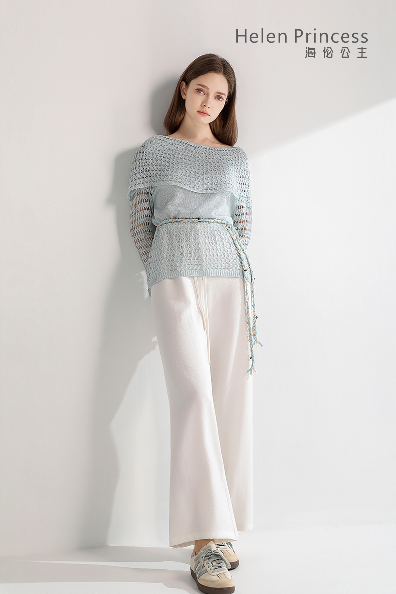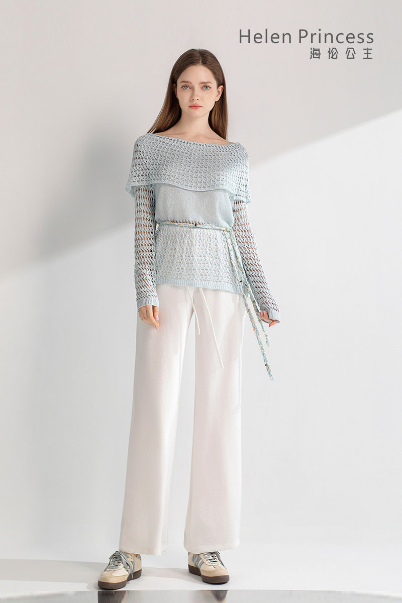 浪漫一字肩设计,大方展露肩颈线条,精美镂空钩花肌理自带通透灵动感,同色系编织腰绳缀以彩珠,随性收腰勾勒曼妙身形,慵懒松弛又充满度假氛围感,演绎温柔仙气,适配多种穿搭场景。