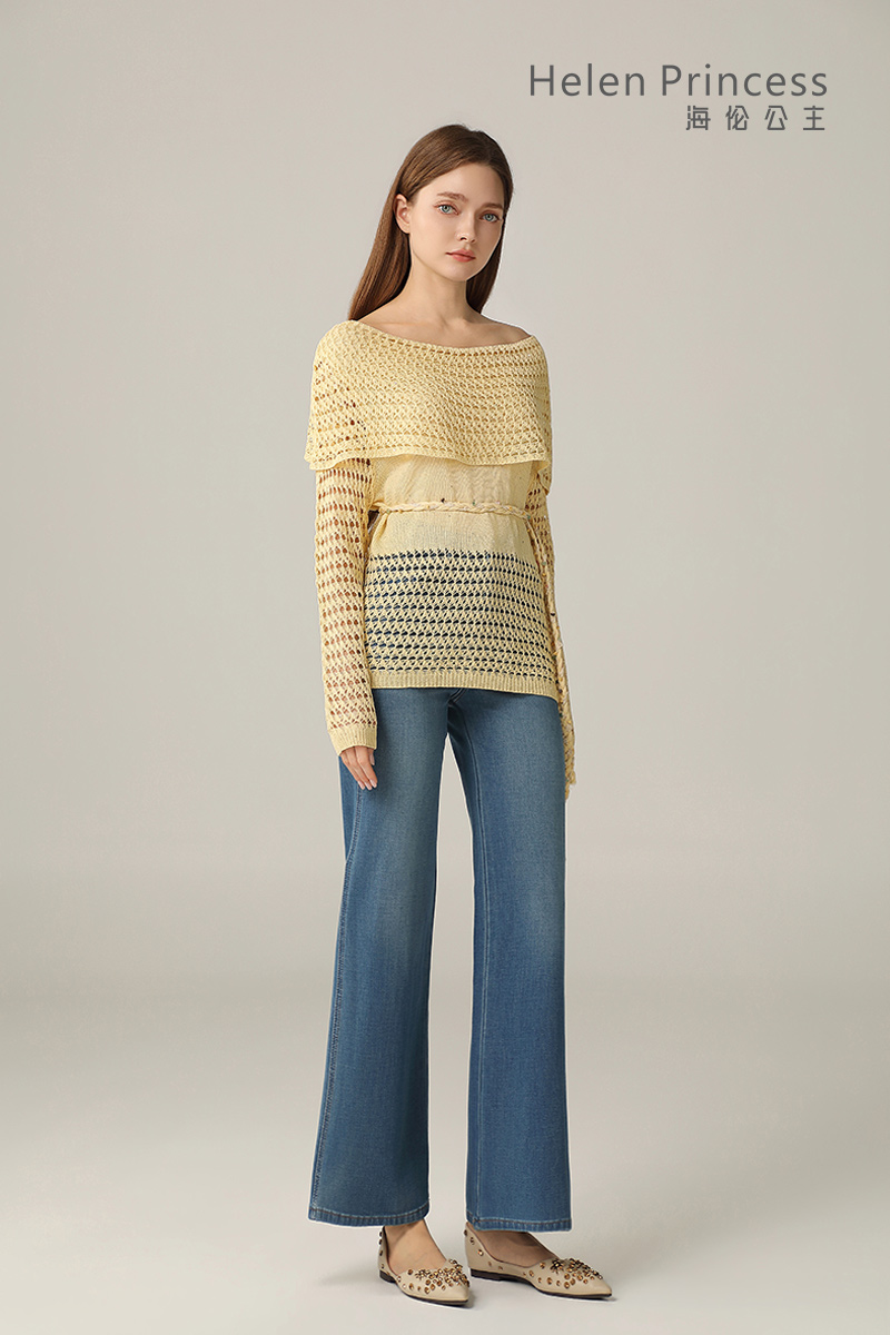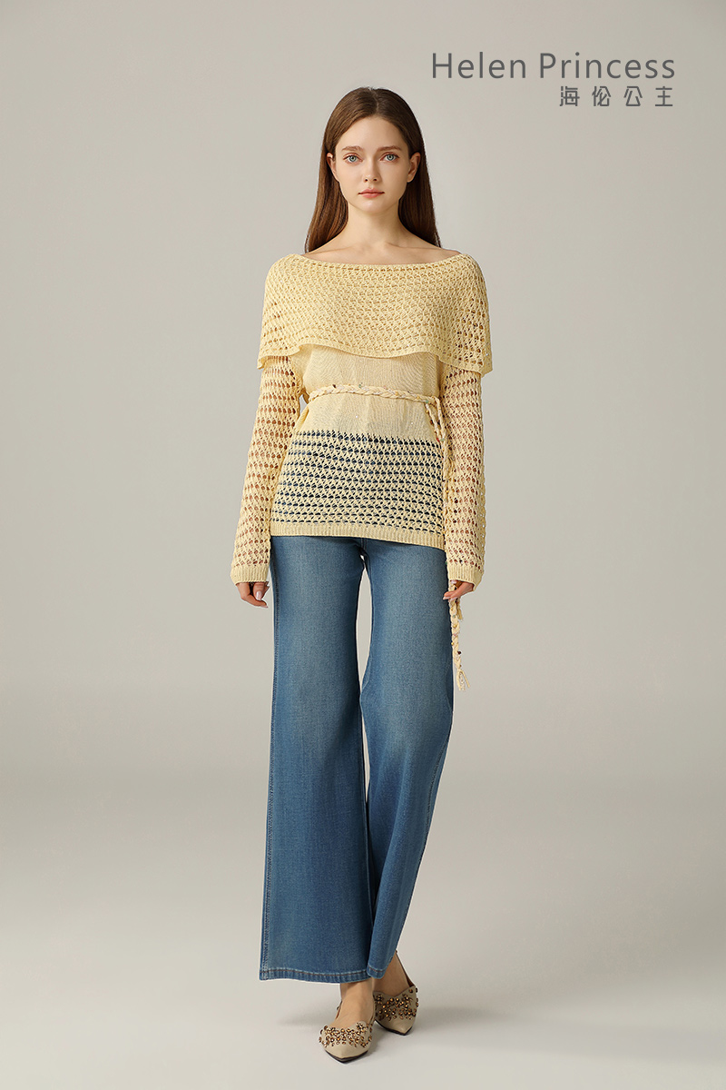 一字肩镂空钩花上衣-------02632907