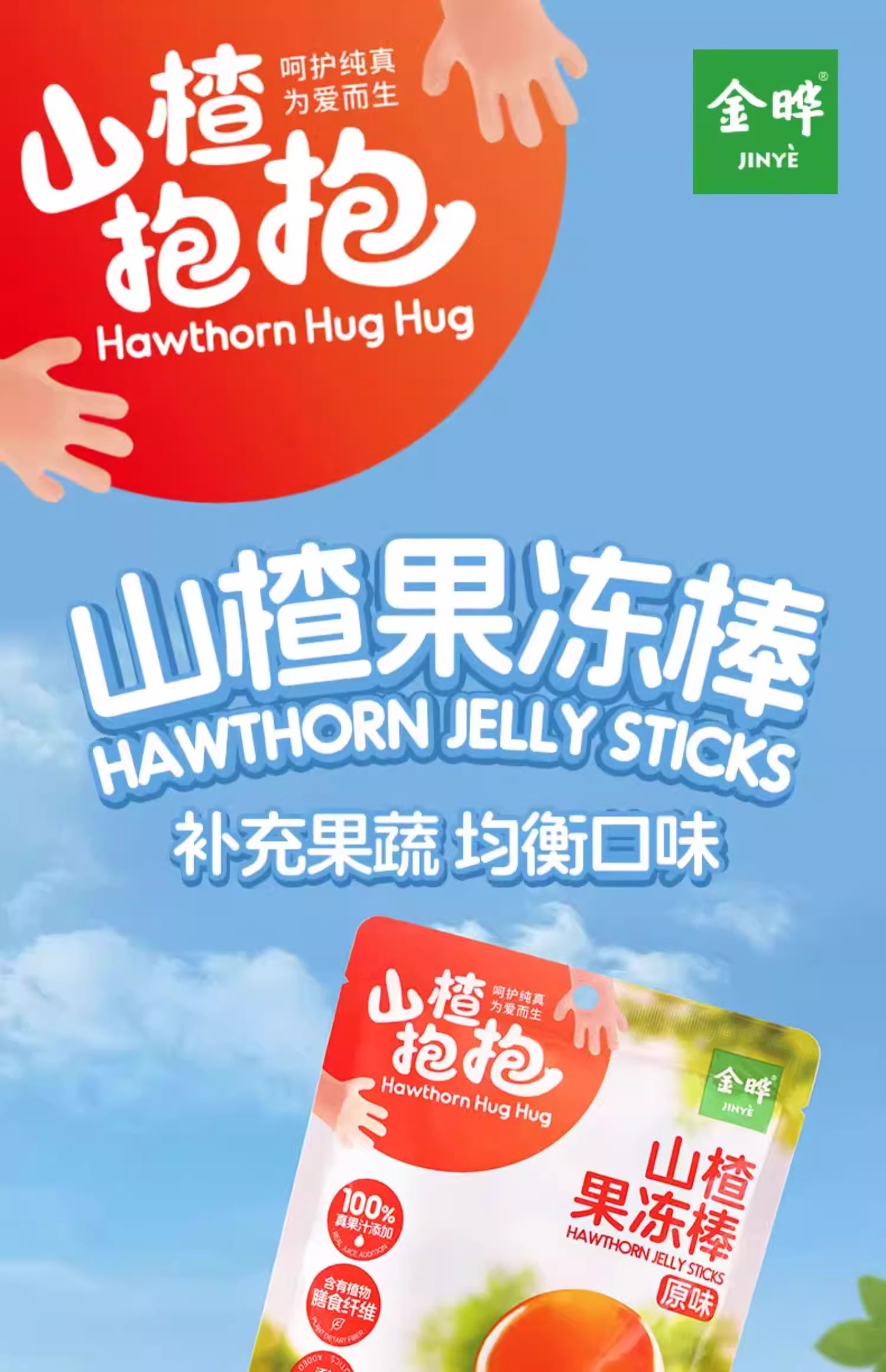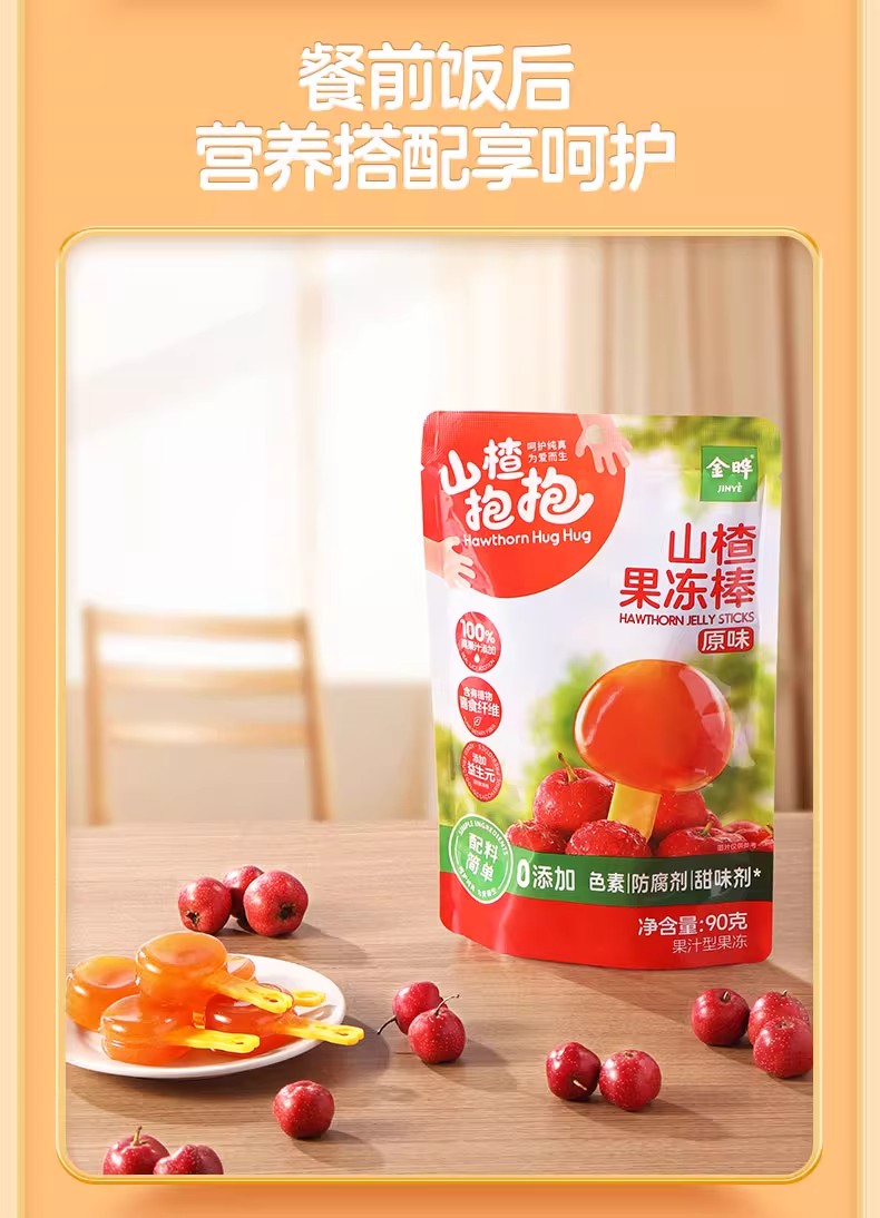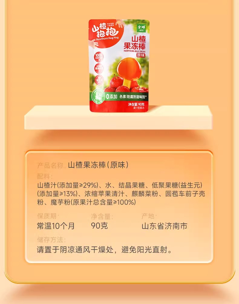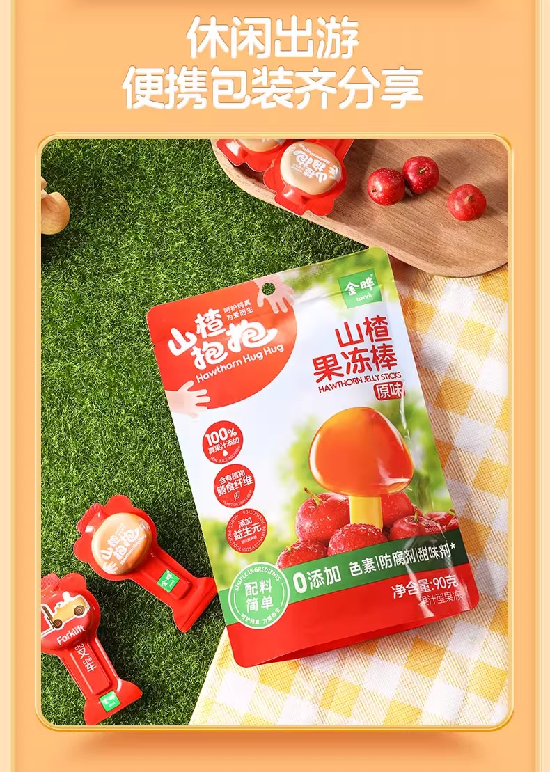 金晔山楂抱抱 果冻软棒 儿童水果棒零食原味90g