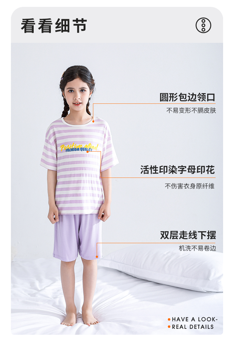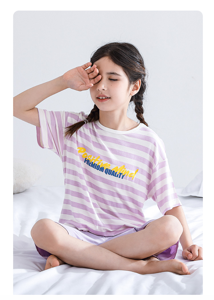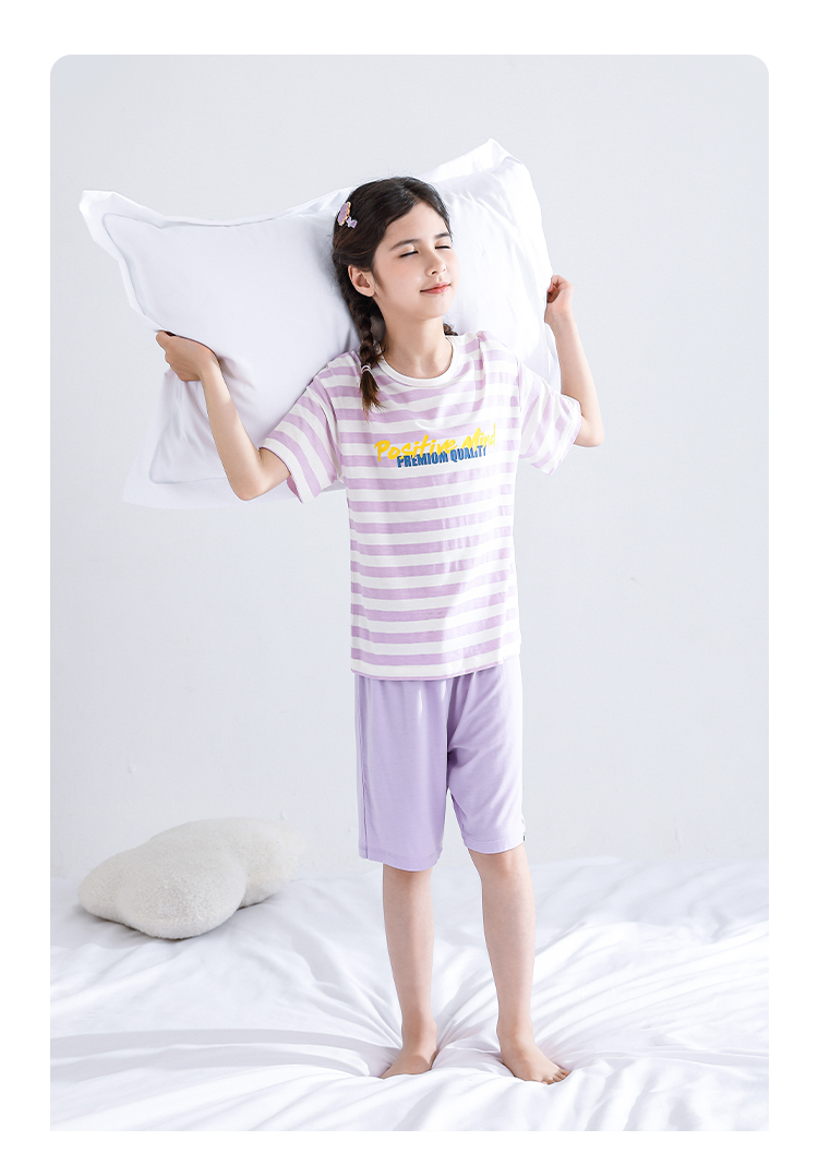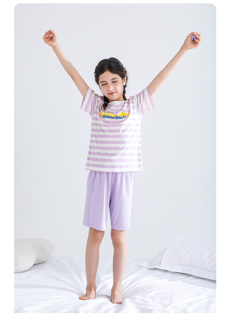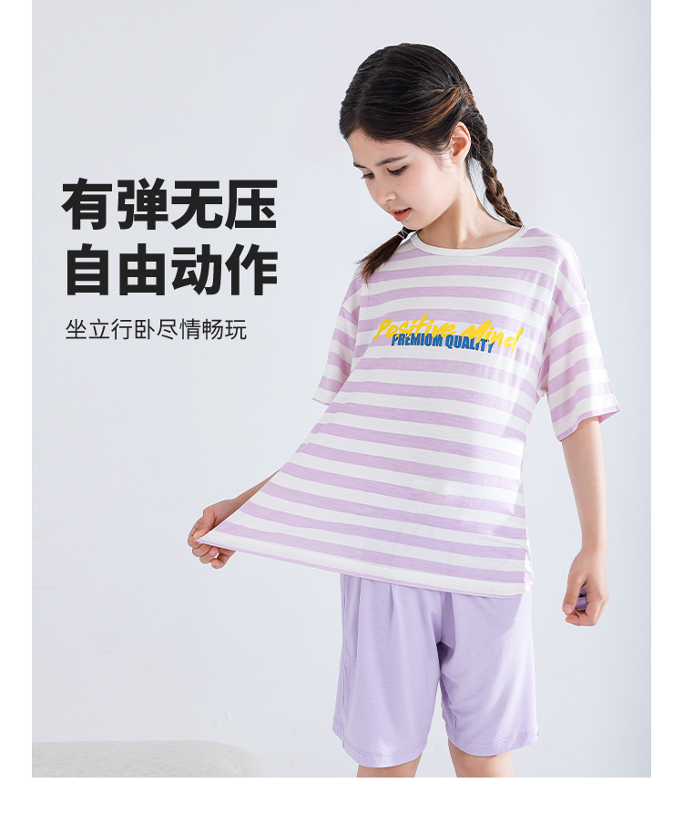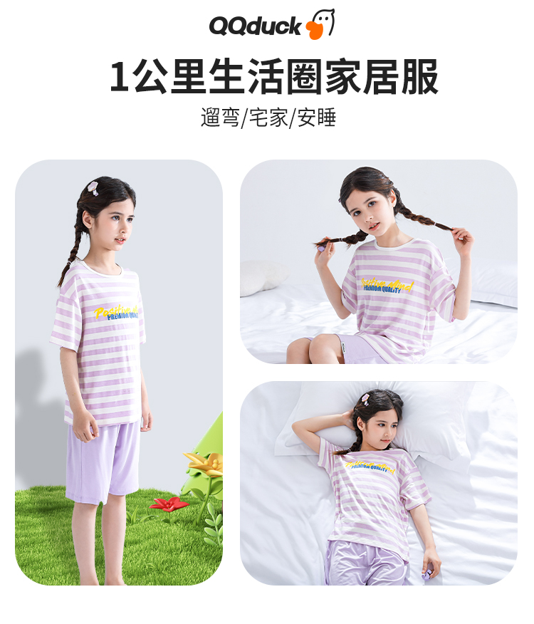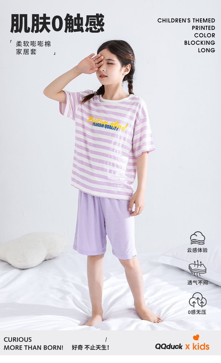 【凉感家居套】【120-160】【可可鸭】女童短袖睡衣夏季薄款家居服套装