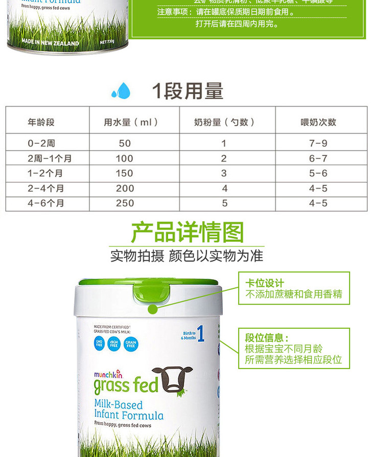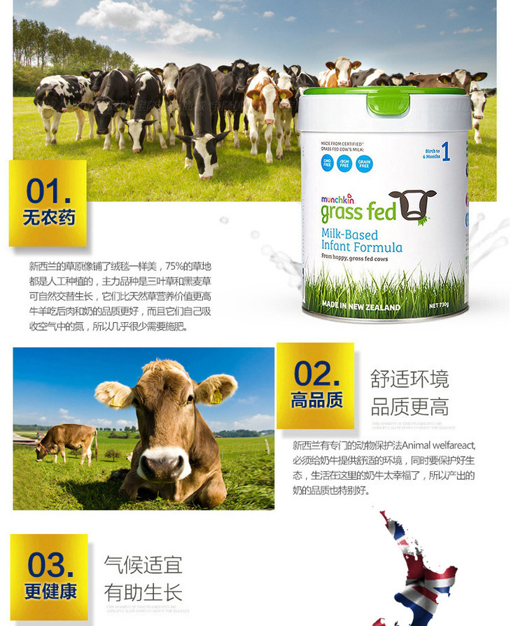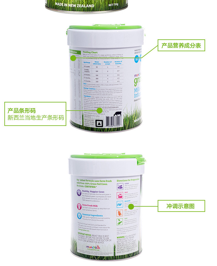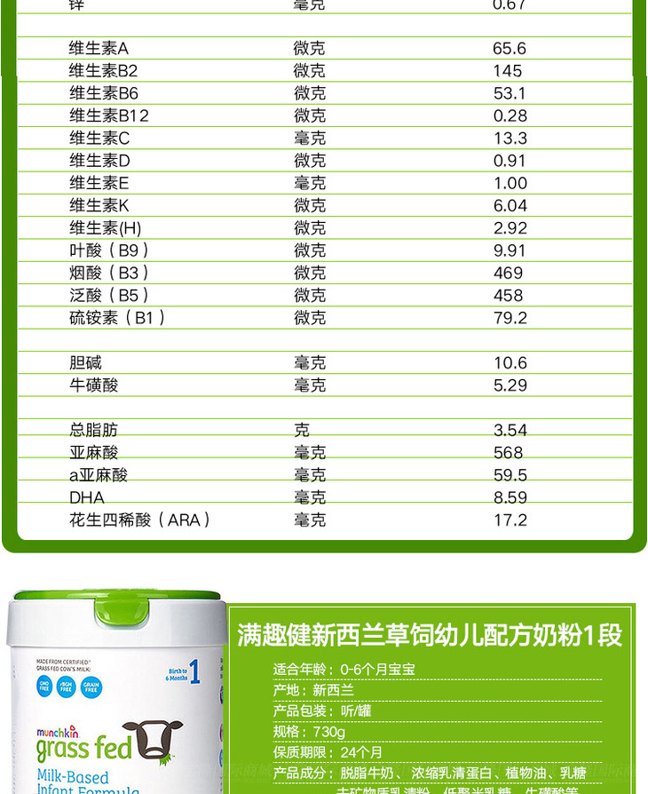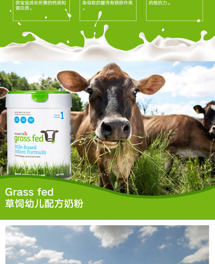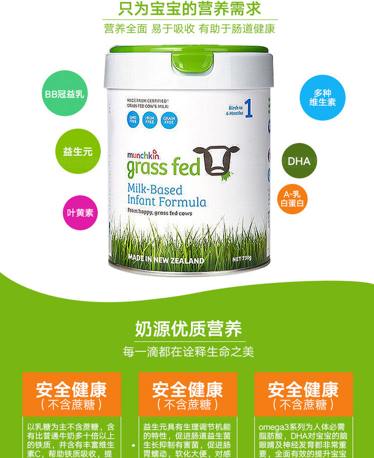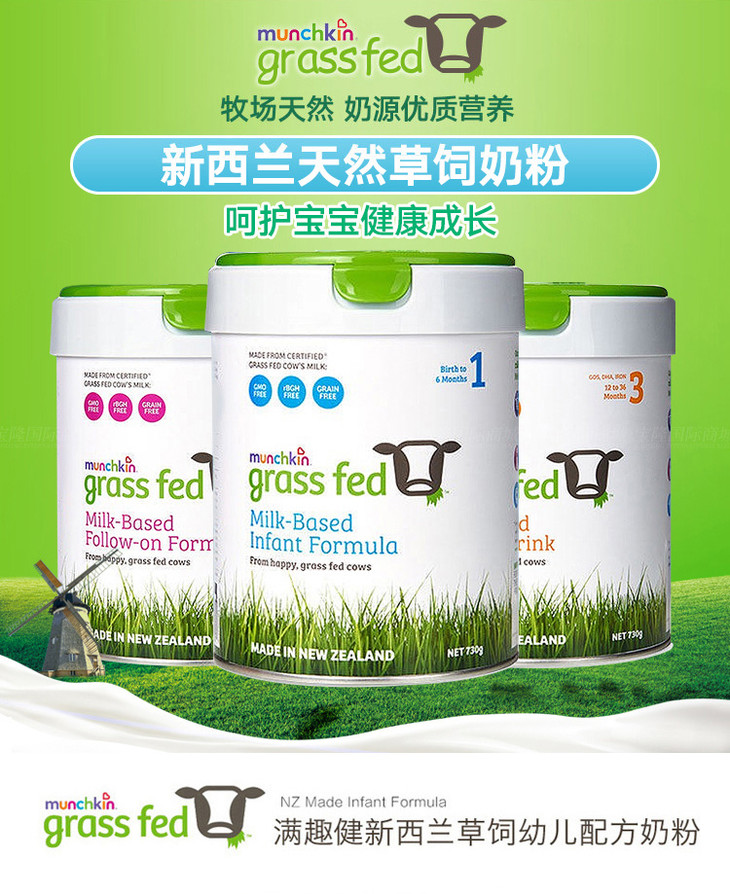 新西兰MUNCHKIN满趣健草饲婴幼儿配方奶粉1段730g/桶0-6个月