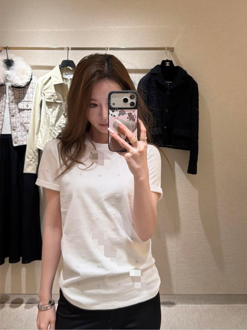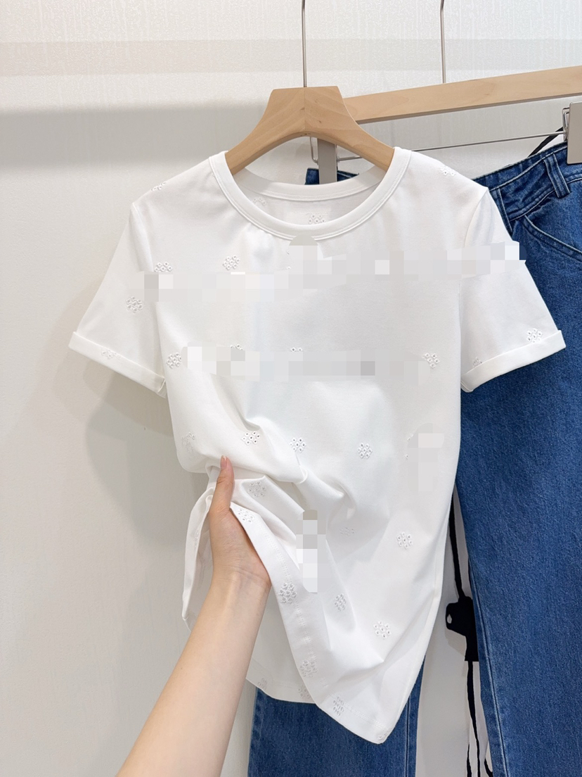 323-4 高货 看相册 真香 女士白色刺绣短袖