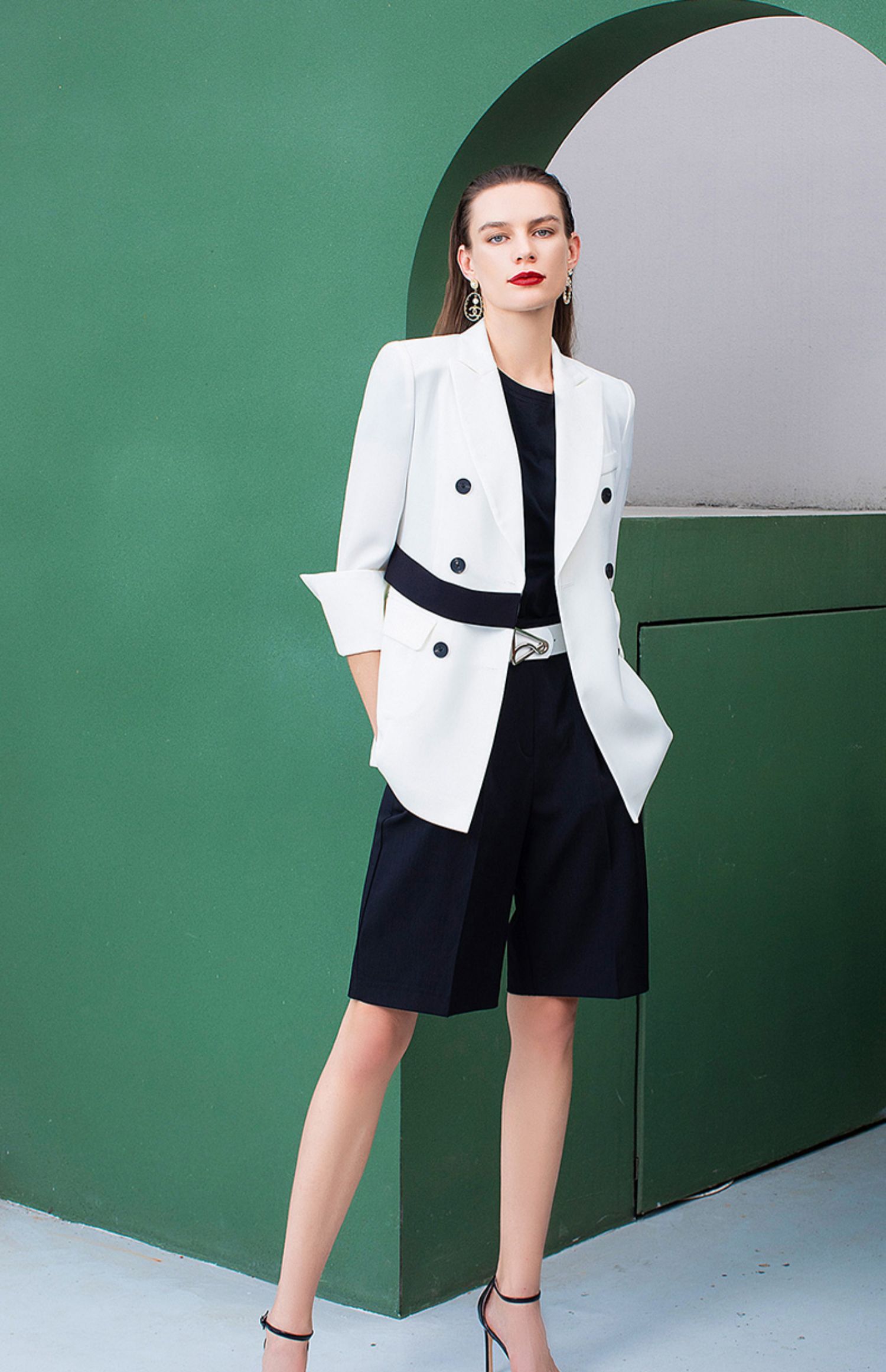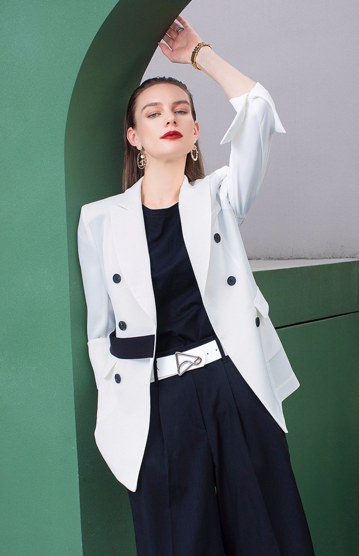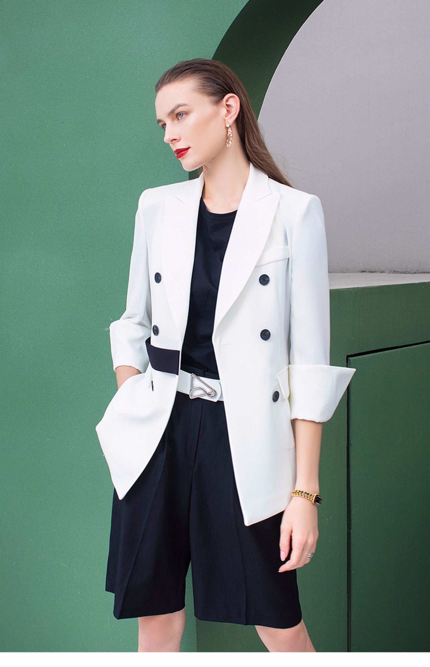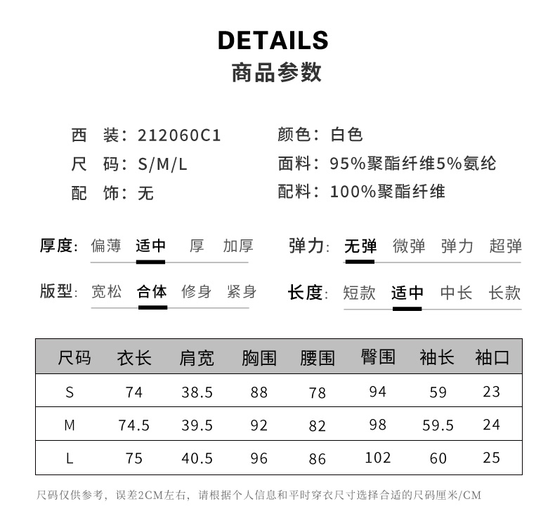 IWY/高端名媛白色双排扣西装女套装小西装外套女韩版休闲 212060C1