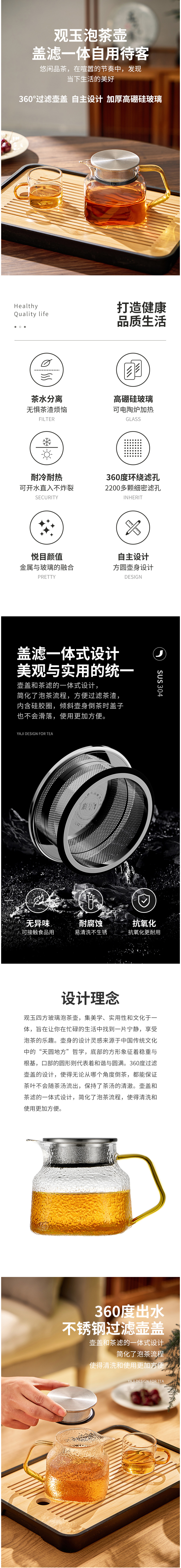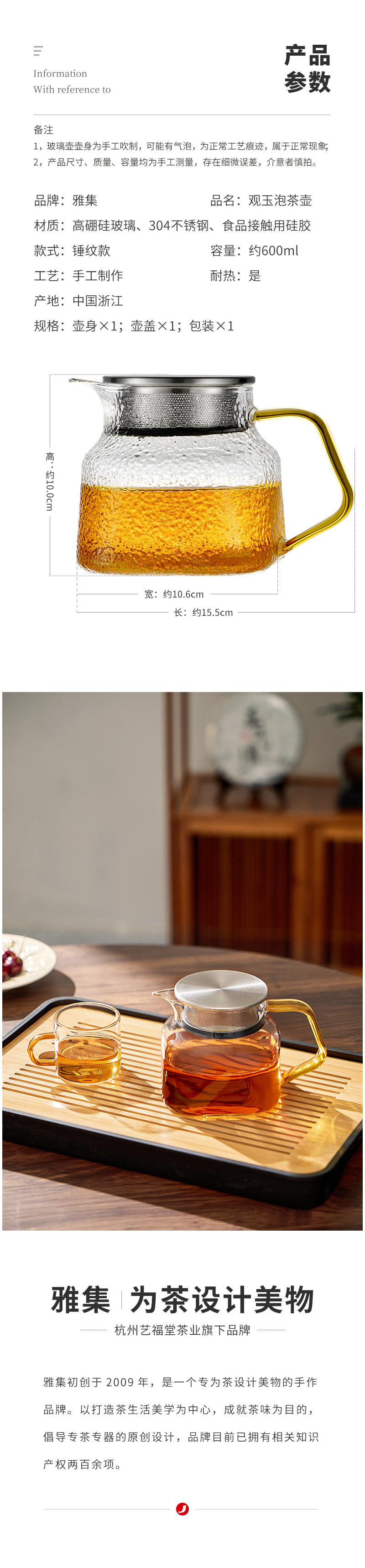 雅集玻璃壶观玉泡茶壶600ml(锤纹款)