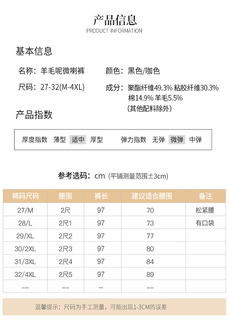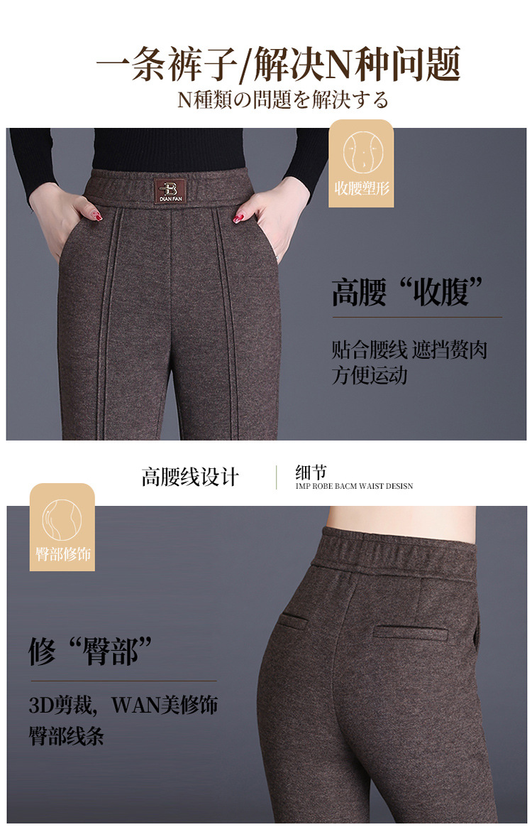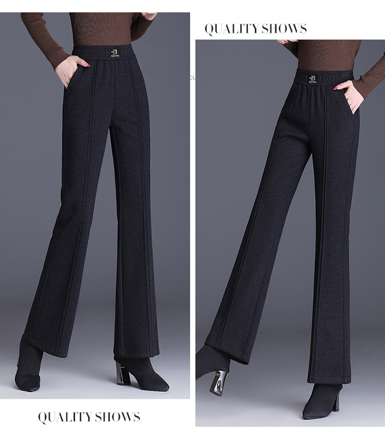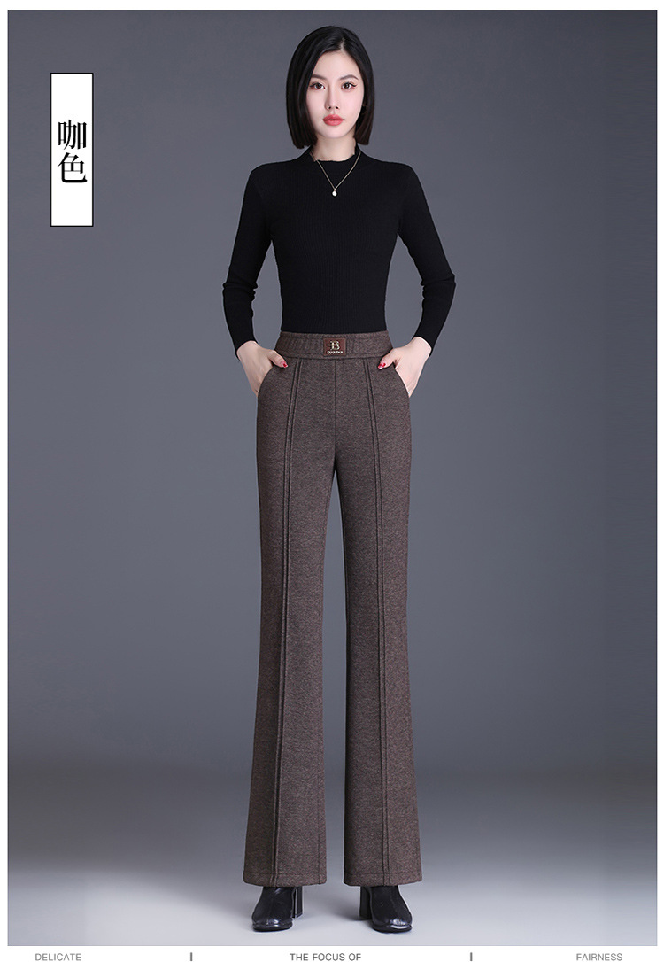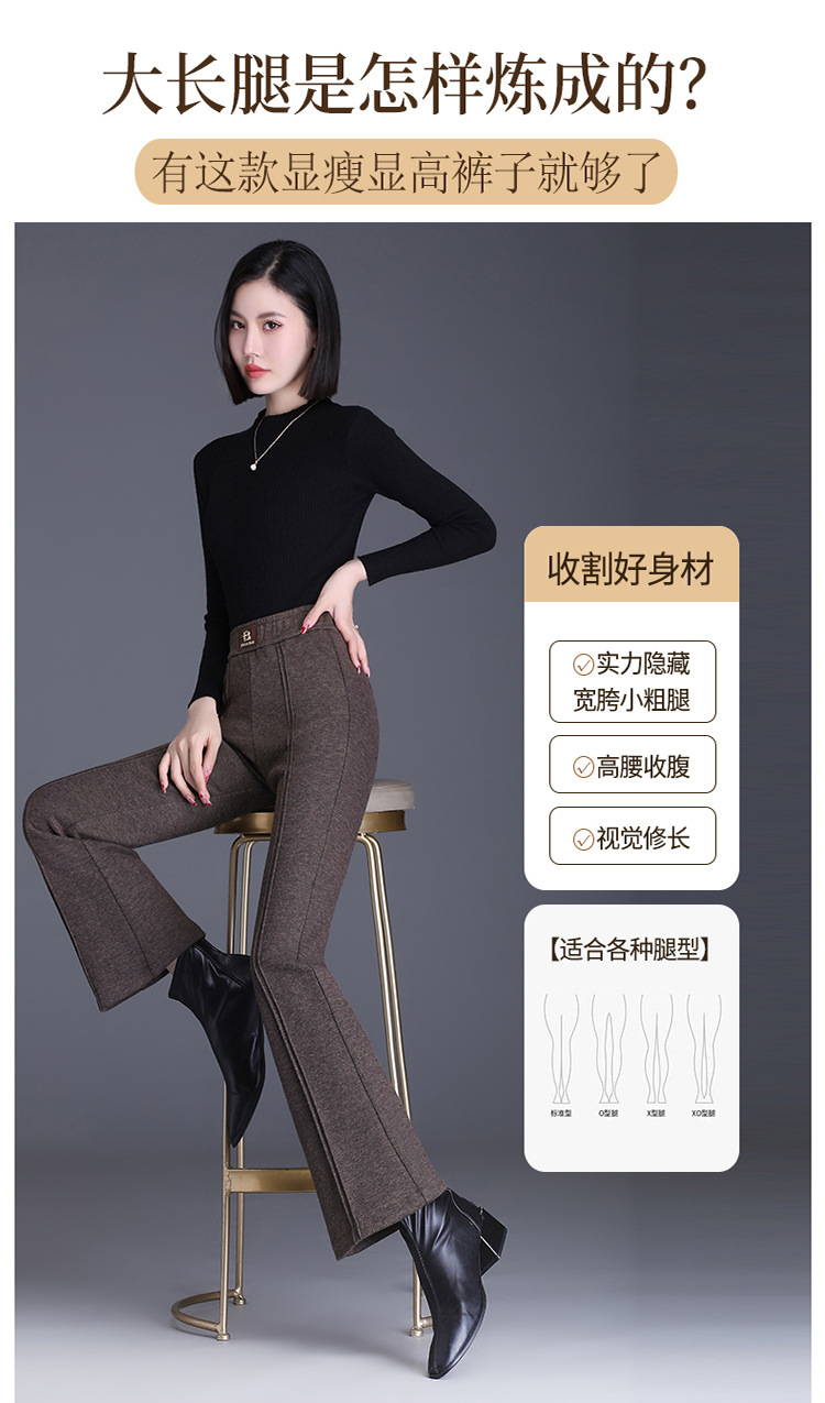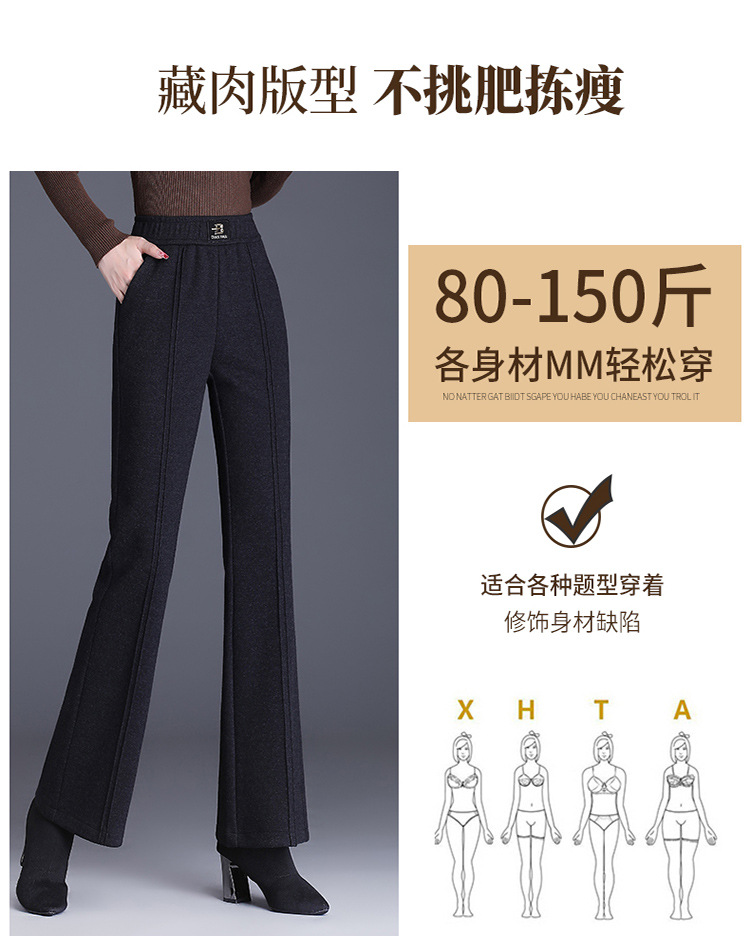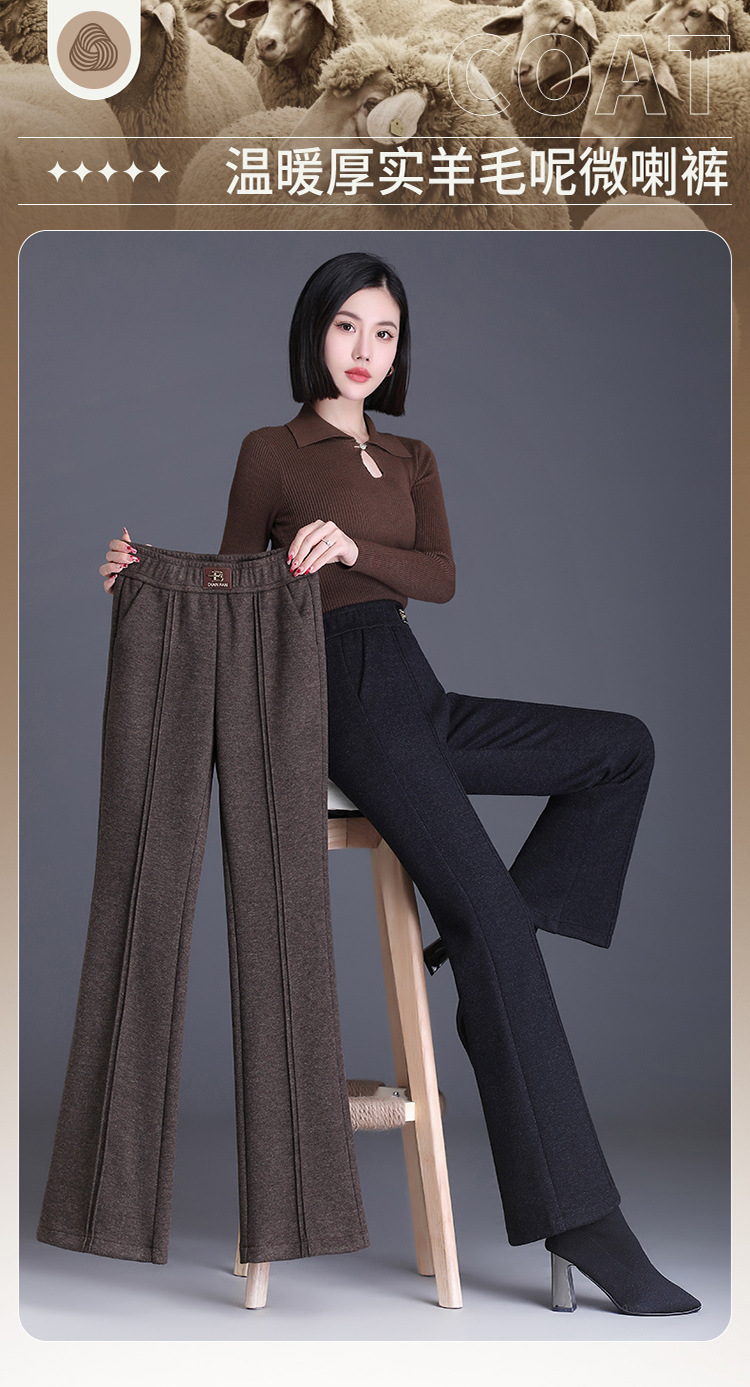 简约厚实保暖时尚通勤松紧腰气质休闲微喇裤MYX-FLS-JZYC82117-L