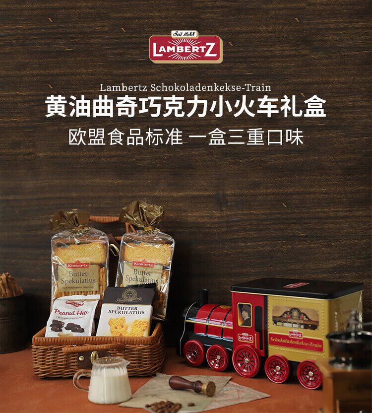 德国Lambertz黄油曲奇巧克力小火车礼盒725g/041234 造型充满童趣一盒三重口味