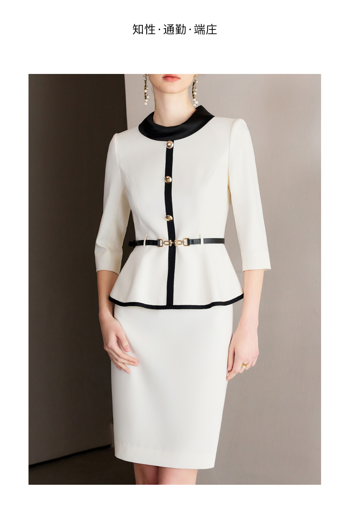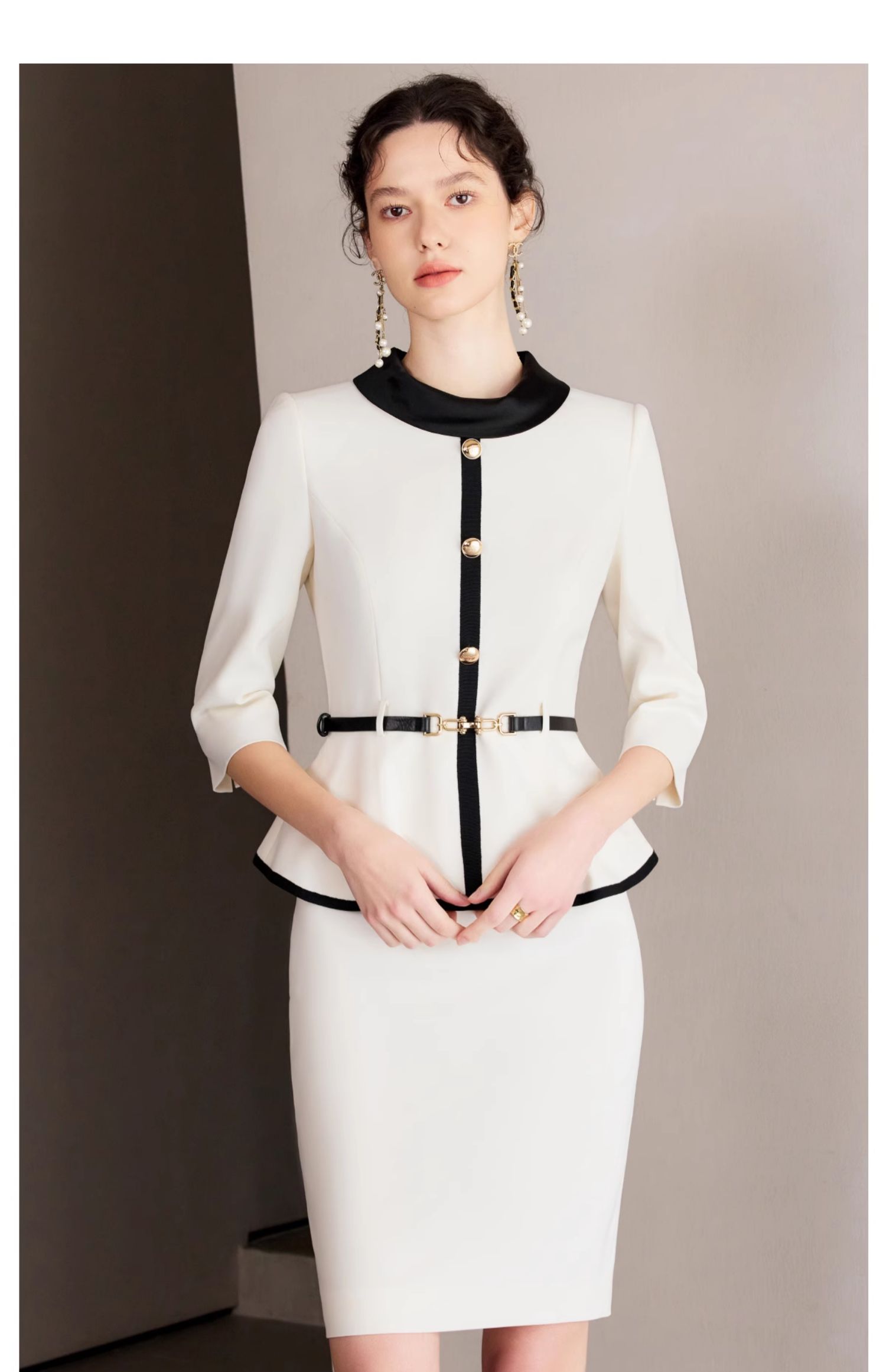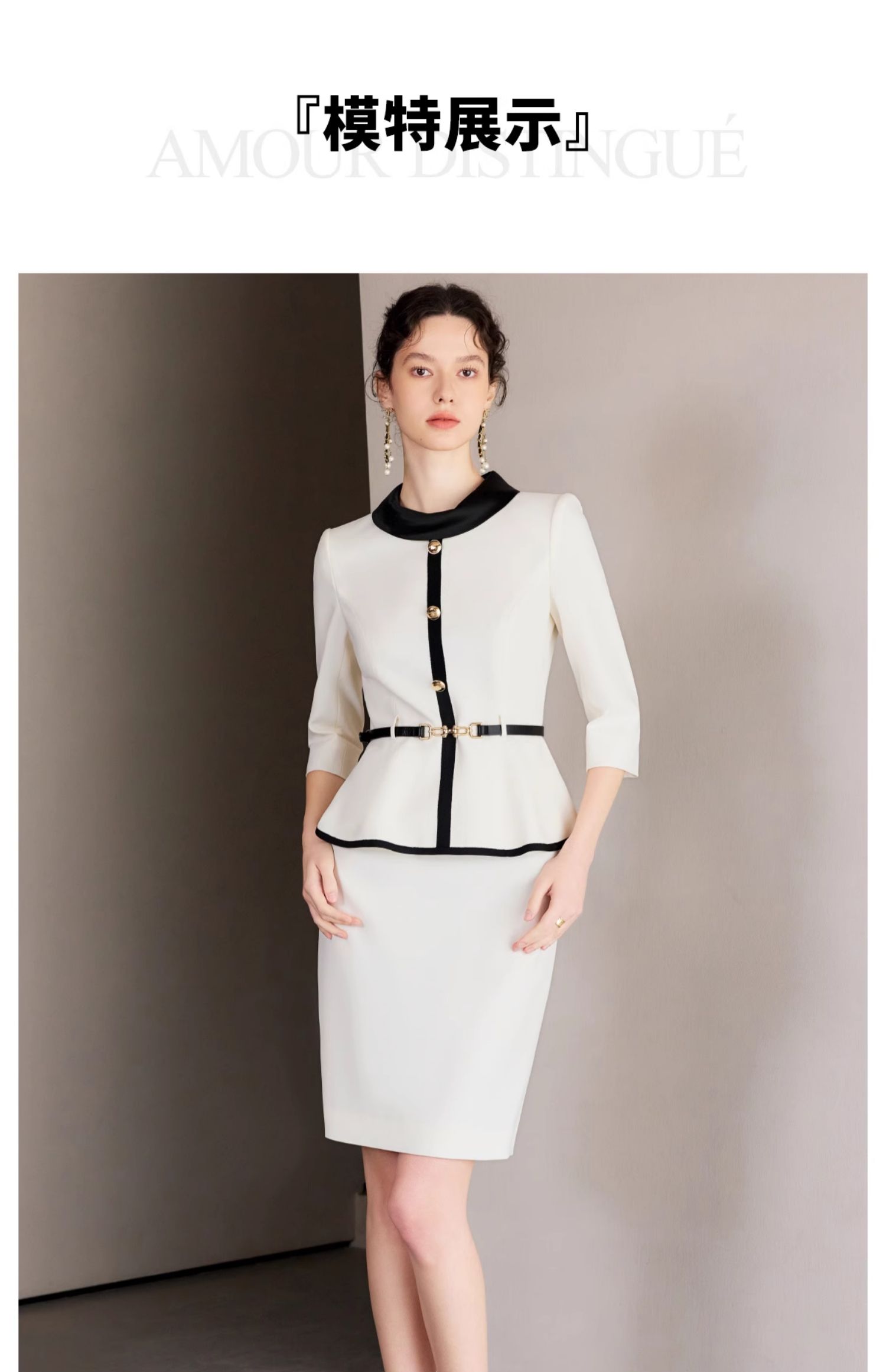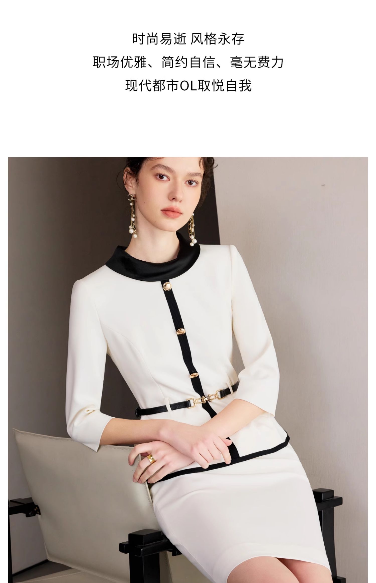 IWY/黑白拼接七分袖白色连衣裙女设计感假两件医美职业裙装正装Q1273