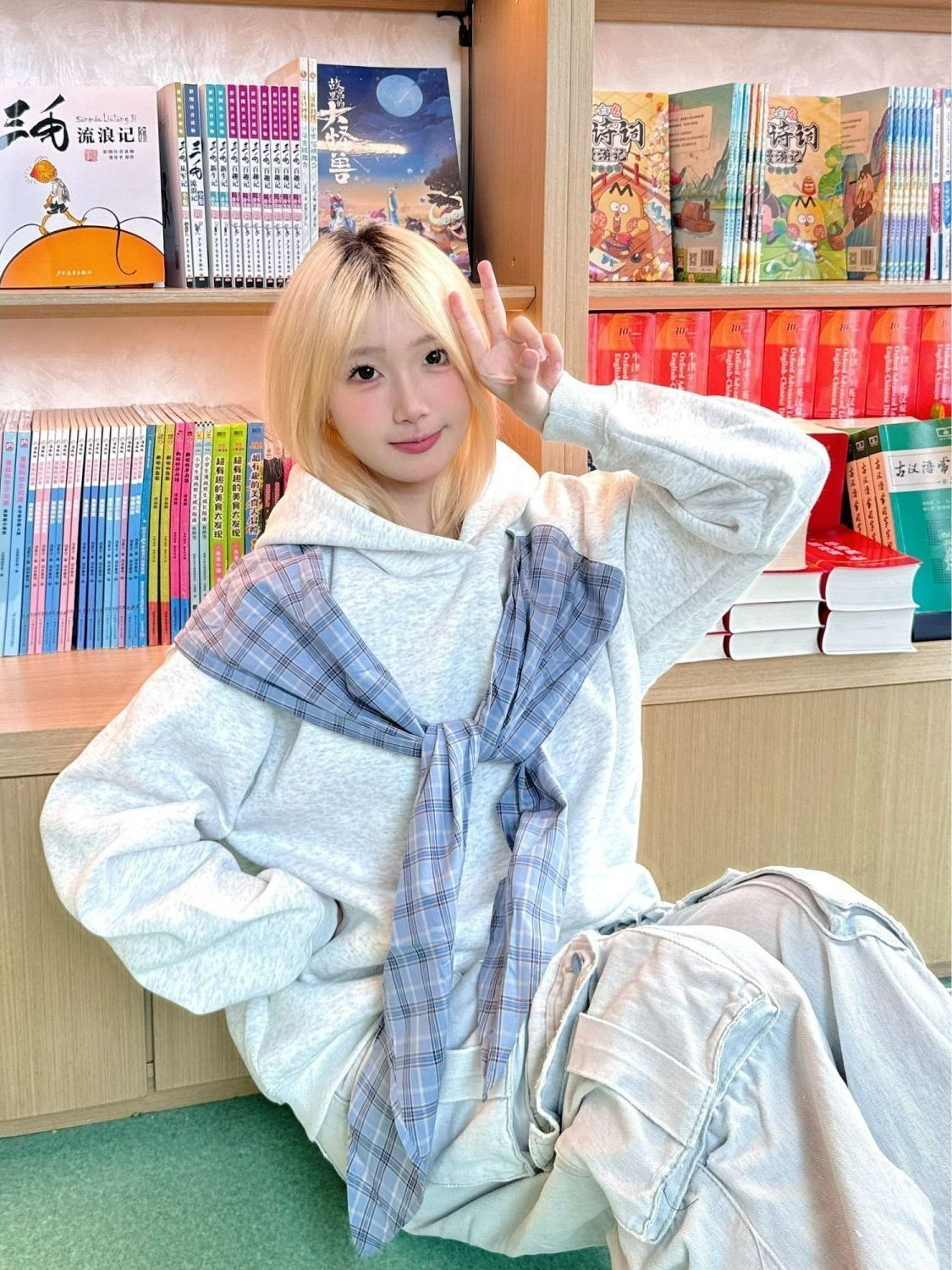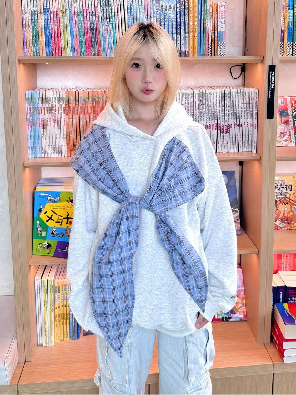 美式复古高街【连帽衫卫衣】男女春季 宽松慵懒绑带格子蝴蝶结上衣潮