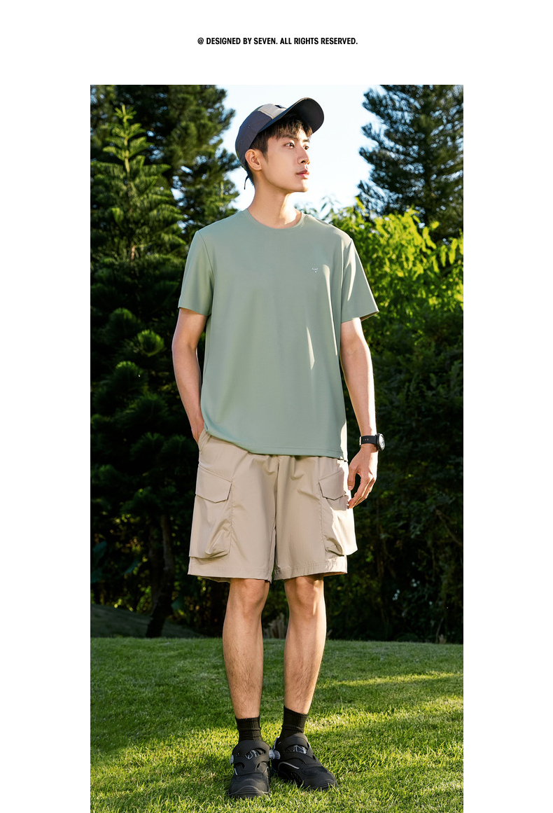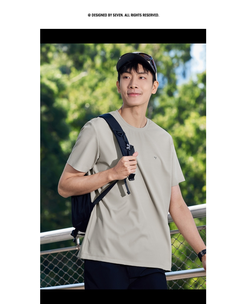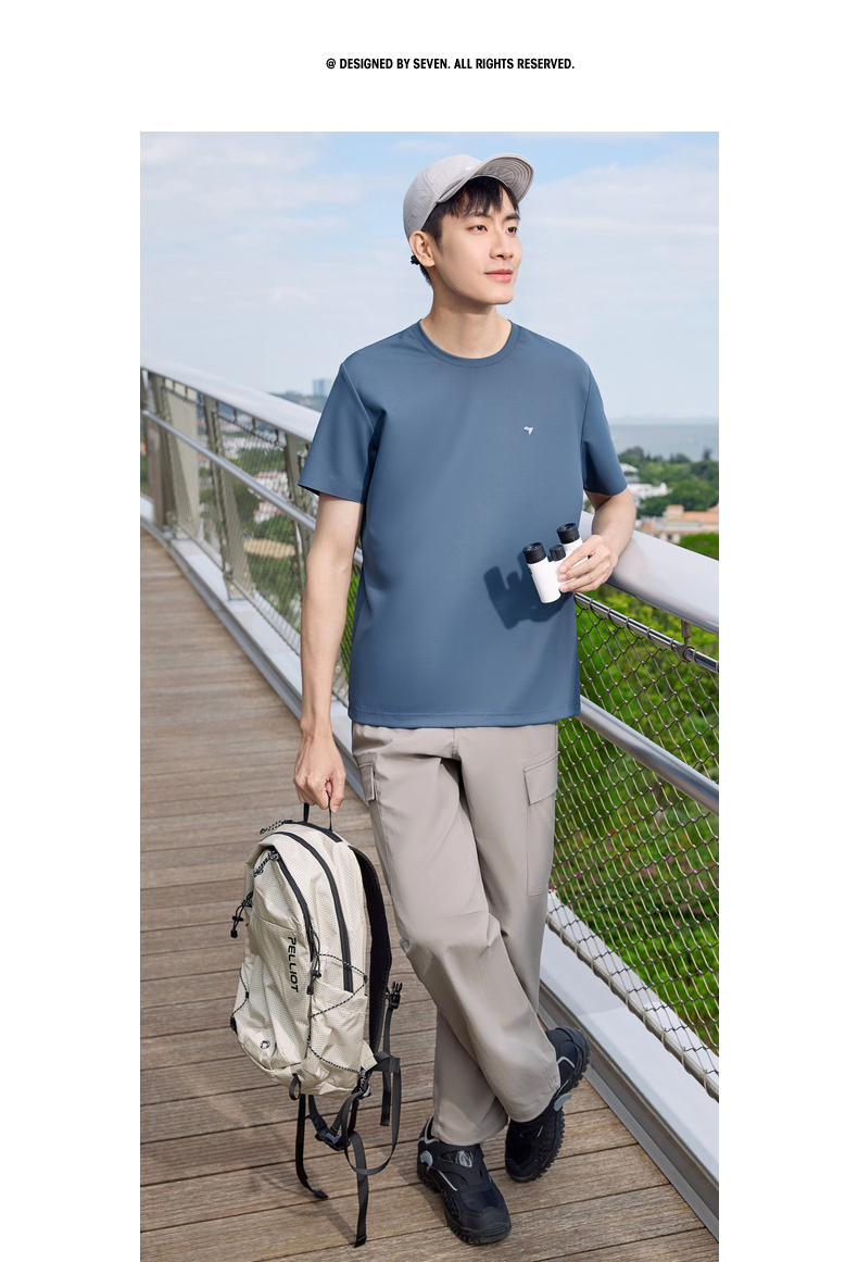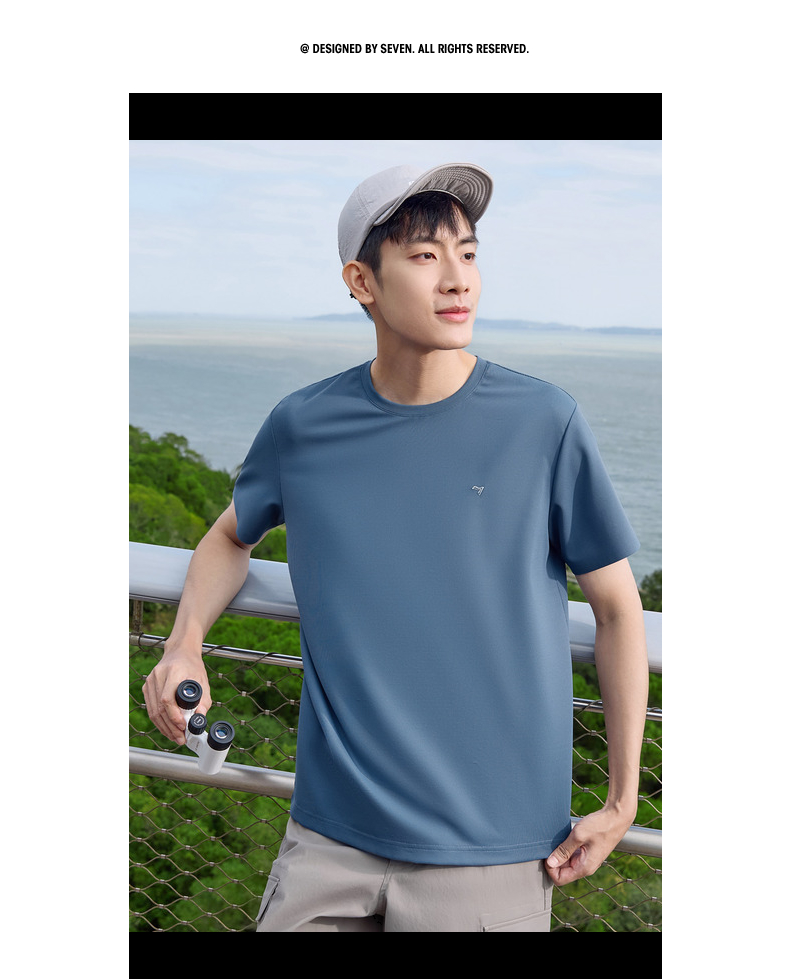 【无缝/高弹/凉感】柒牌男士短袖T恤2025夏季新款休闲百搭体恤衫128T72170
