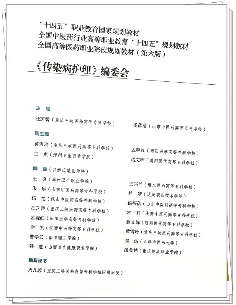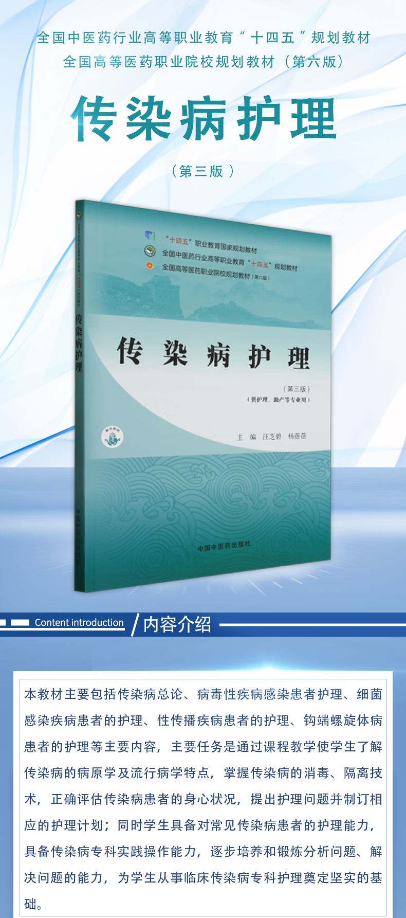 传染病护理 第3三版 全国中医药行业高等职业教育十四五规划教材 汪芝碧 杨蓓蓓 主编 供护理 助产等专业用 中国中医药出版社