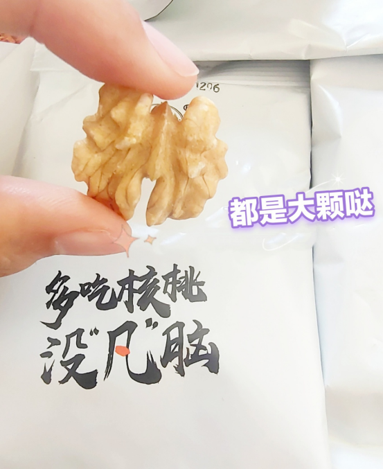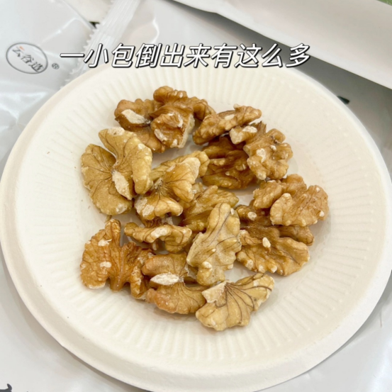 一袋里面有5小包,每包27g ✅单袋独立装,想吃的时候撕一袋,干净方便 市面上很多核桃仁都是大袋大罐子的 每次打开都会接触空气,容易氧化出油 吃到后面一股哈味,都回了 ✅这个1次1袋,新鲜如初