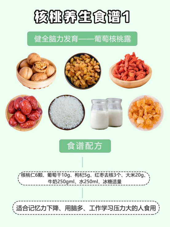 《本草纲目》也记载:“核桃补气养血、润燥化痰、 益命门、利三焦,治肺润肠、腰脚重痛” 平时多吃一点核桃,真的好处多多 如果觉得直接吃有点寡淡 也可以搭配其他食材,既好吃,营养也更丰富!