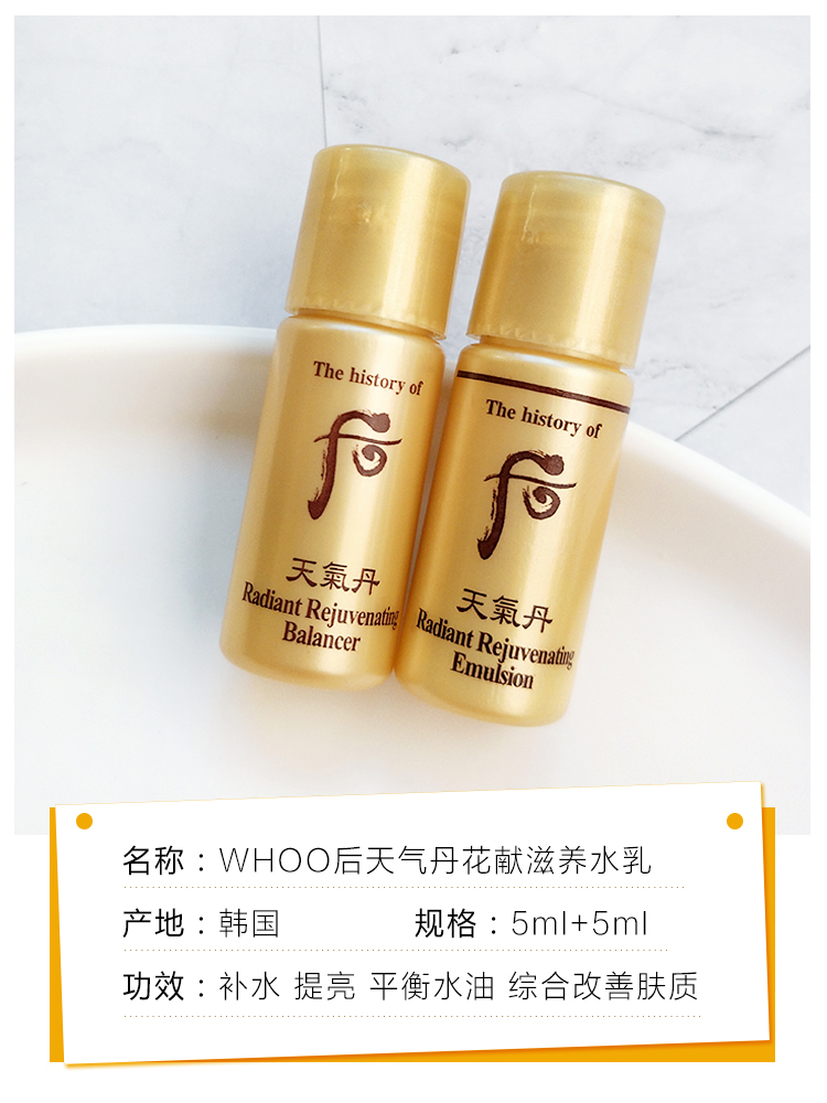 Whoo后 天气丹华泫水乳 小样 5ml 天气丹华泫花献乳液两件套装