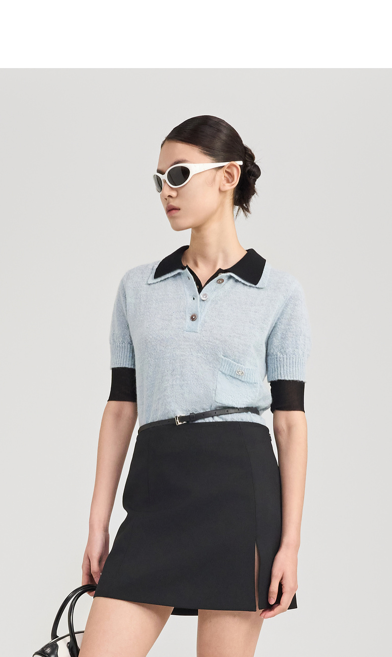 [捡漏价]lost in echo2024秋季新款高级时尚轻薄polo领短袖针织衫T恤上衣