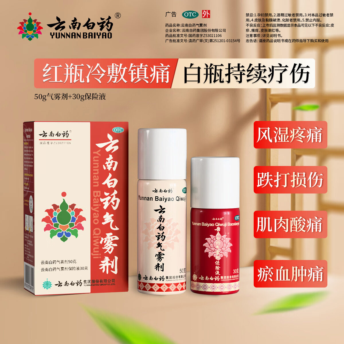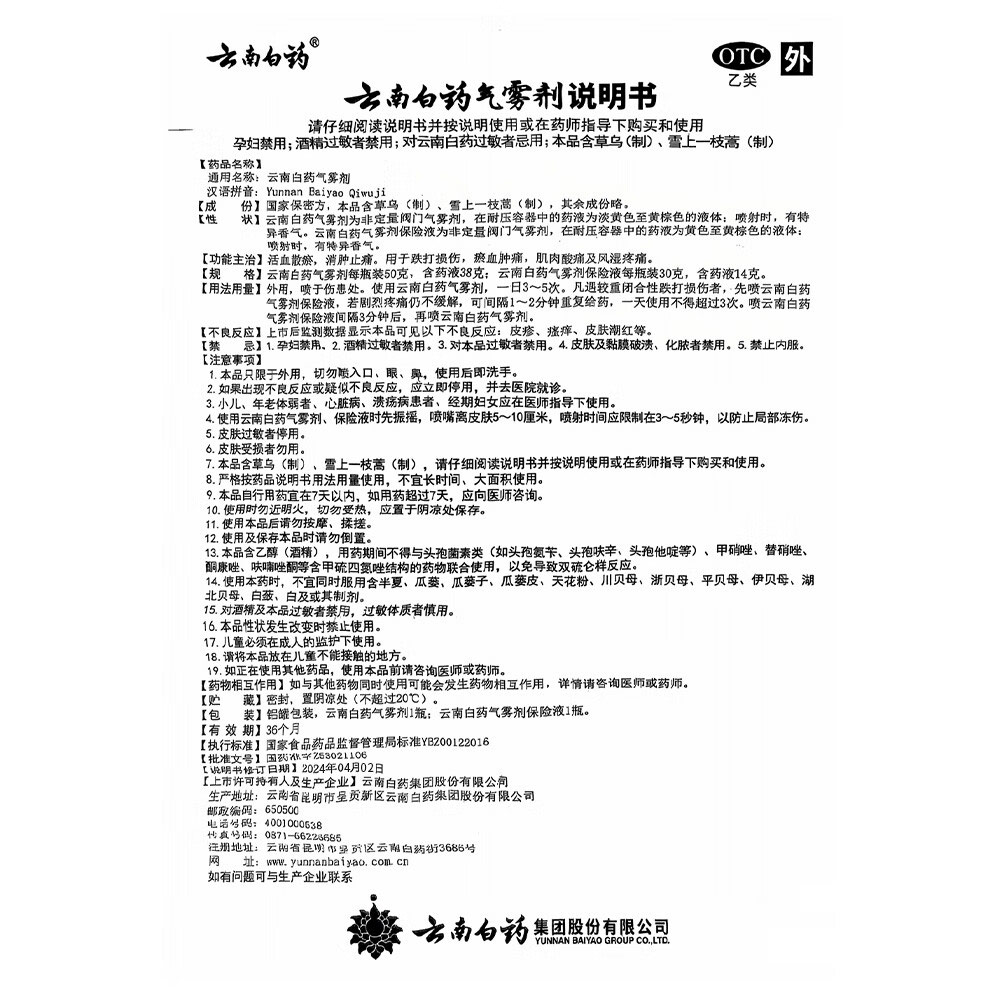 【官方正品】云南白药气雾剂保险液喷雾剂跌打损伤消肿止痛活血化瘀扭伤拉伤用于淤血肿痛肌肉酸痛风湿疼痛用于跌倒损伤多规格可选