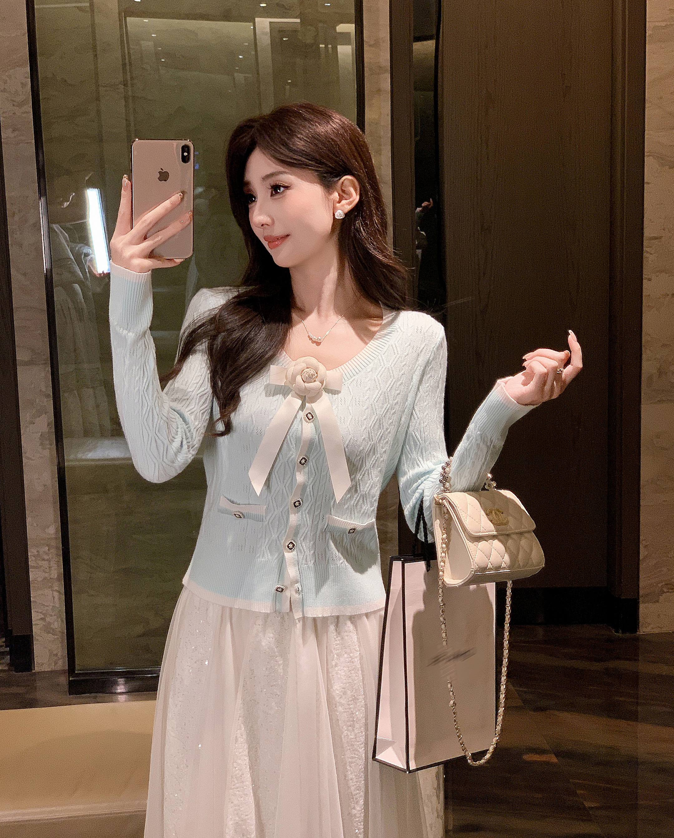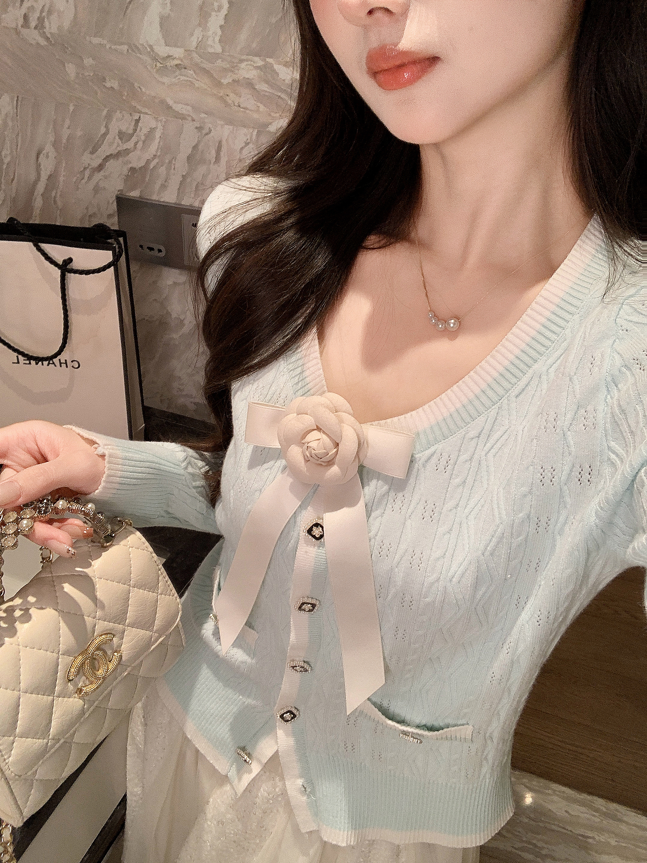 张心子【海盐白沙】miu系山茶花小香风开衫 U2509006