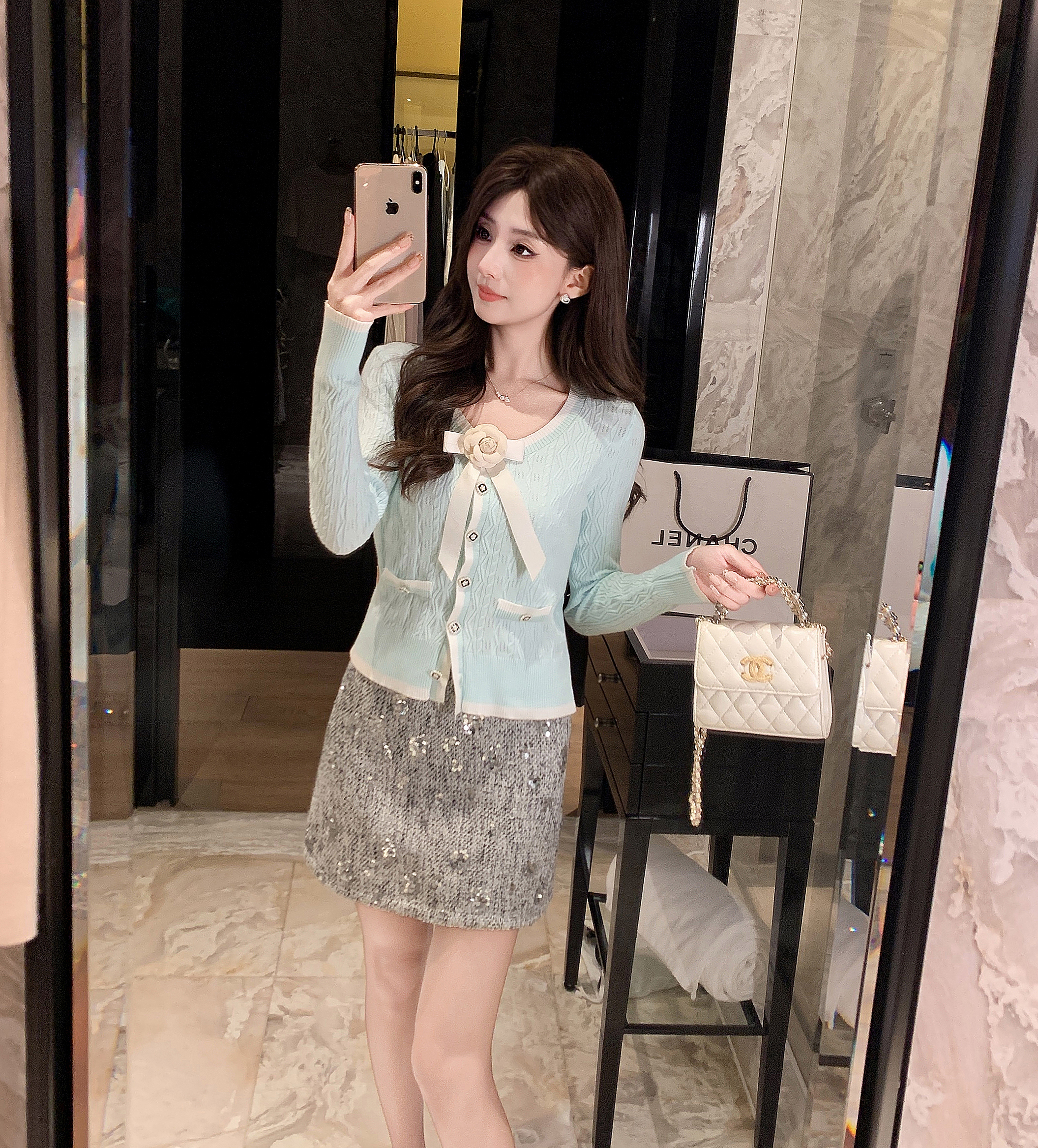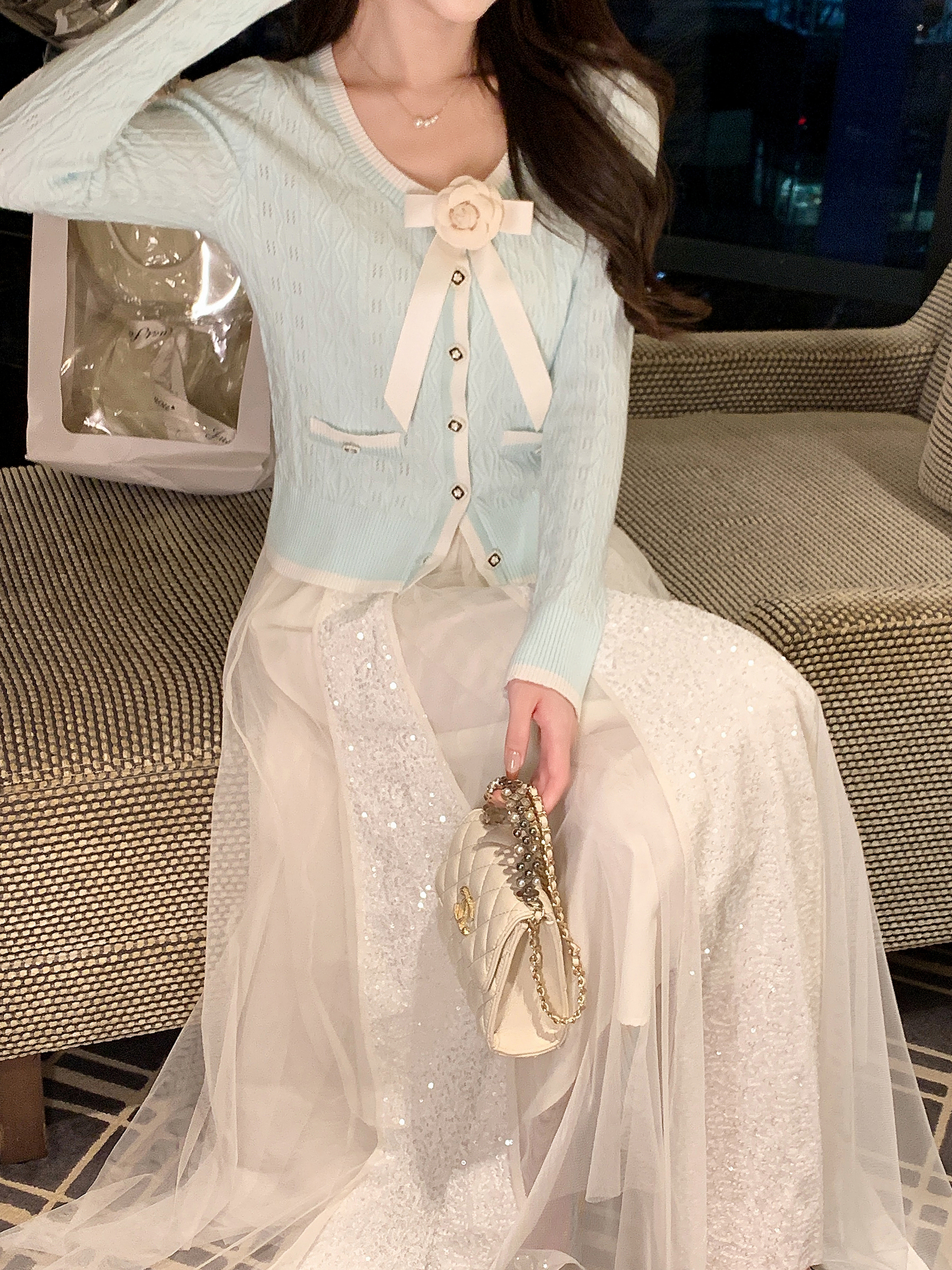 张心子【miu系千金】miu系减龄少女镂空手袖亮片开衫上衣 U2602021