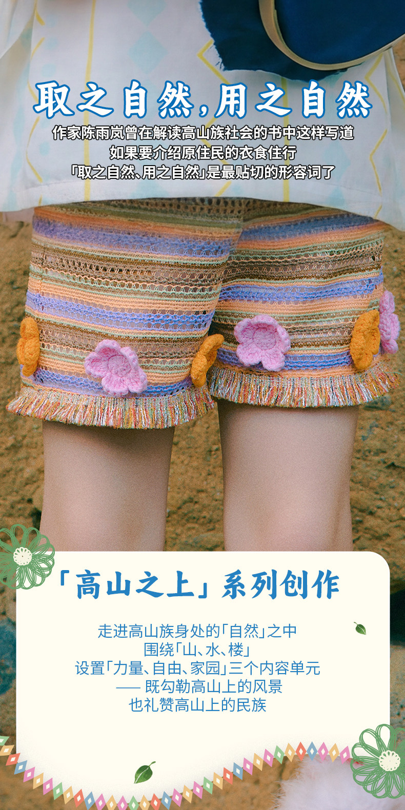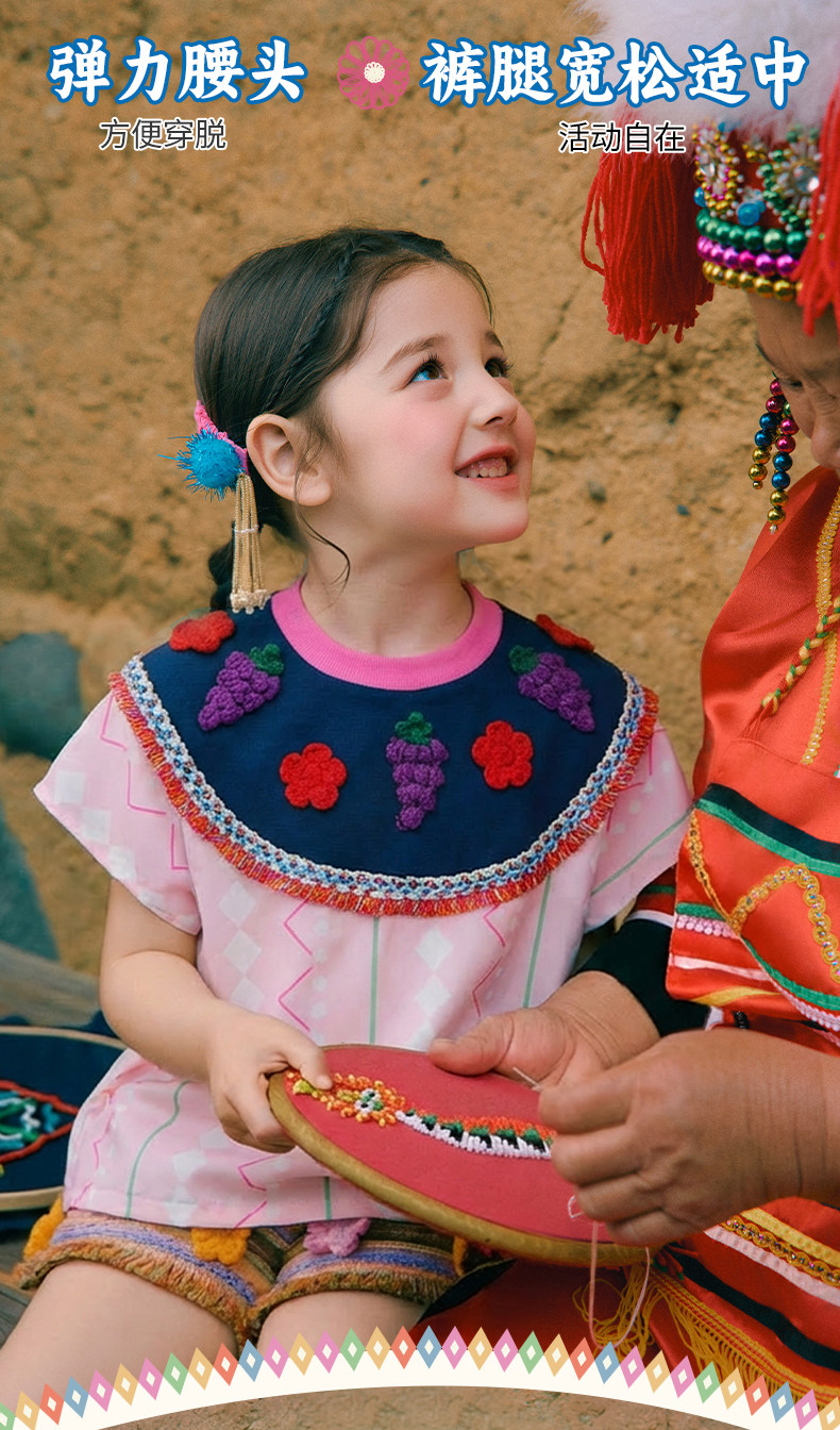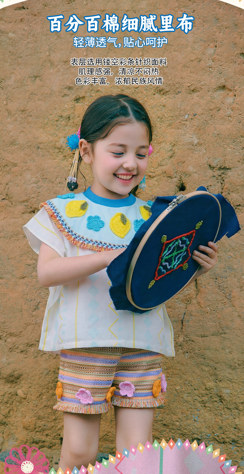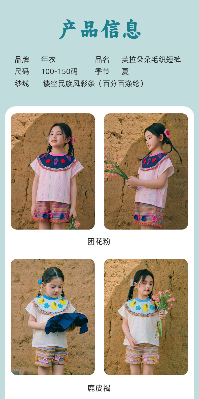 年衣童装儿童针织短裤女童夏季新款民族风中大童下装高腰毛织裤子