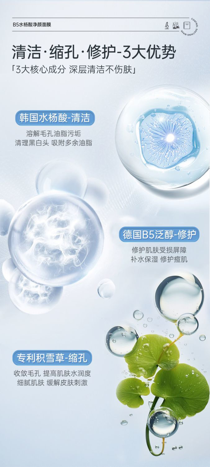【温和0添加,净澈收毛孔 敷走黑白头!】全新升级2.0维生素原b5水杨酸面膜,快速渗透肌底,温和不刺激,涂抹式面膜补水保湿!-QQ