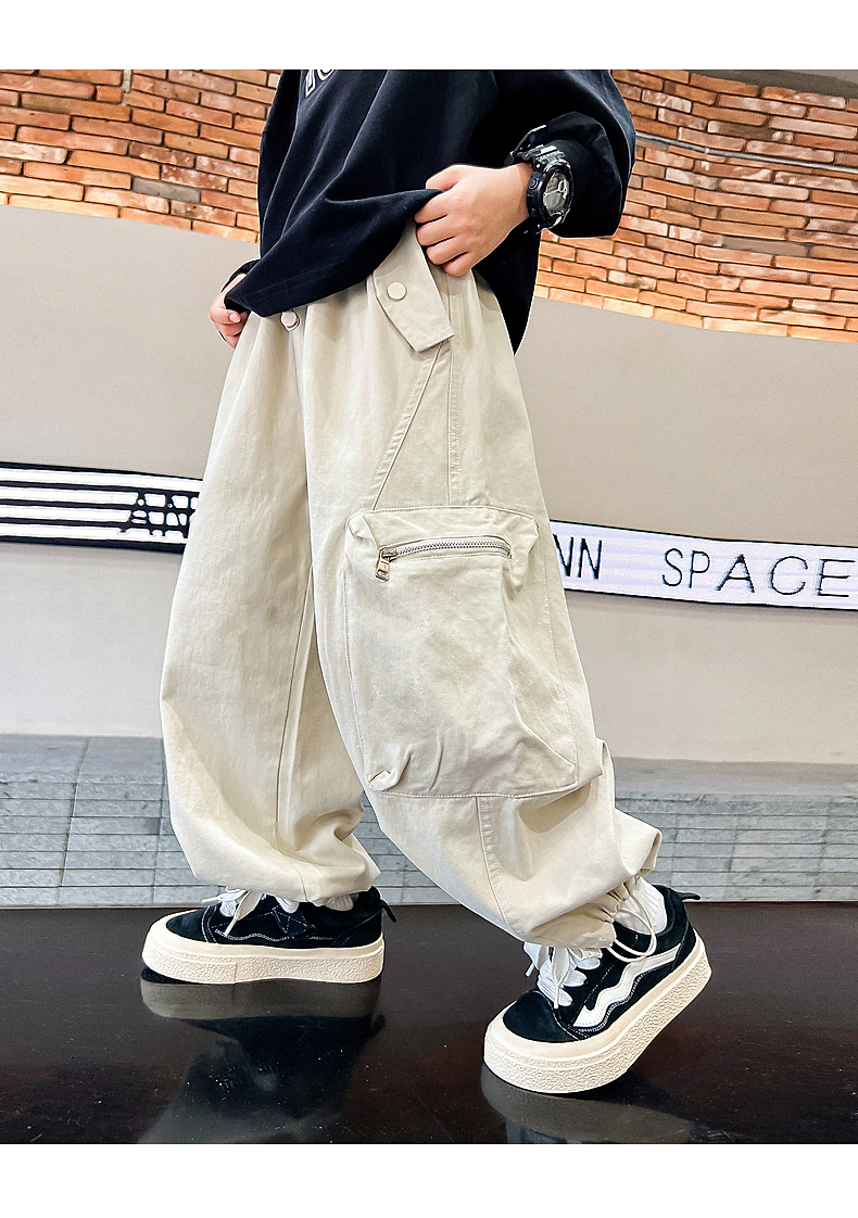 韩国AS品牌正品男童春秋装卡其色薄款裤子儿童宽松直筒新款工装裤