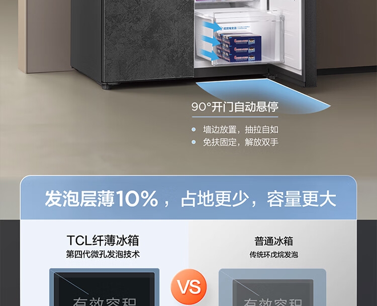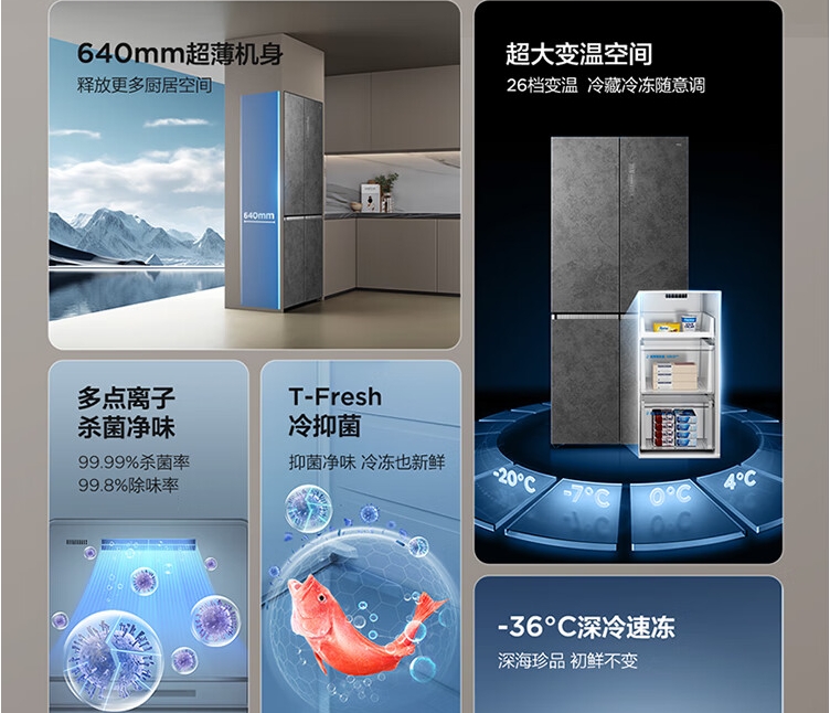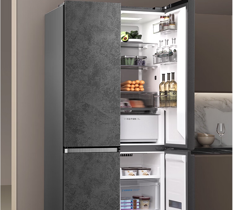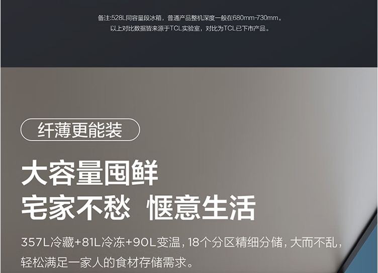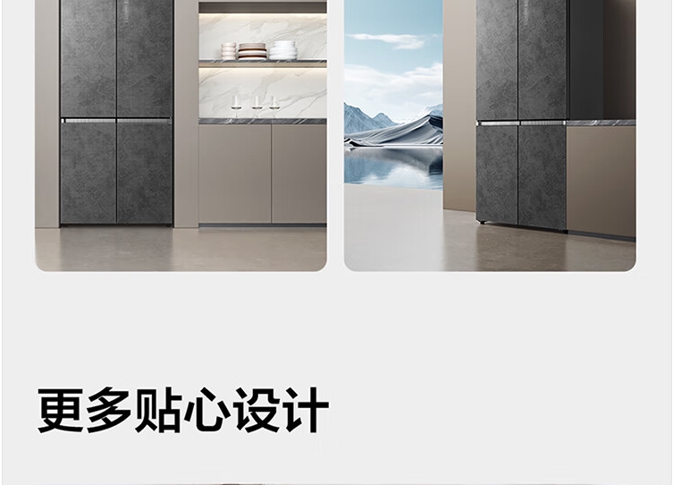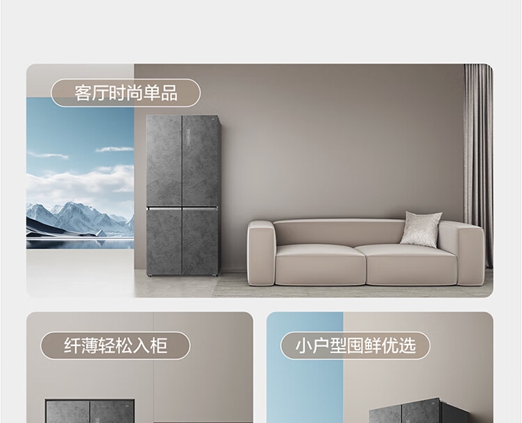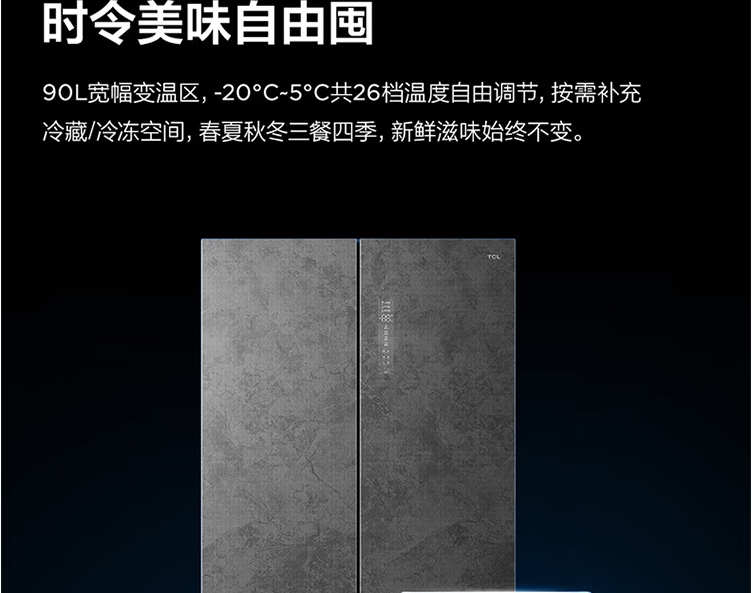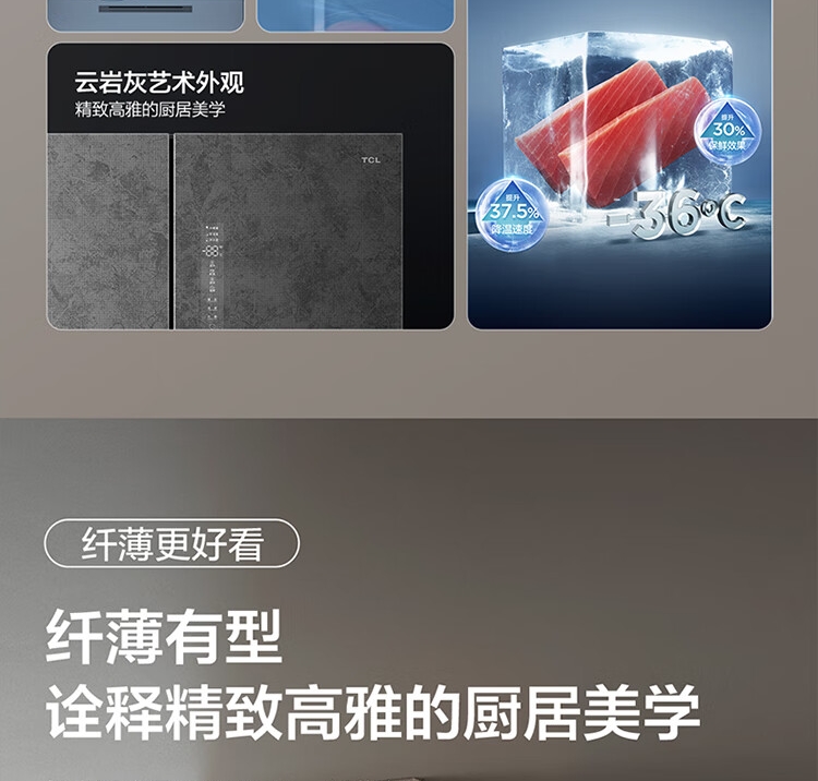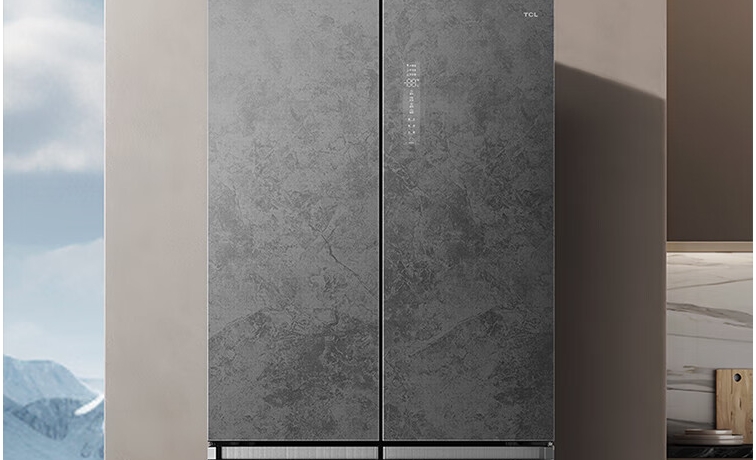 TCL528(912696)升纤薄系列十字对开四门变频电冰箱 640mm超薄机身 多点离子杀菌 云岩灰玻璃面板 R528P8-U