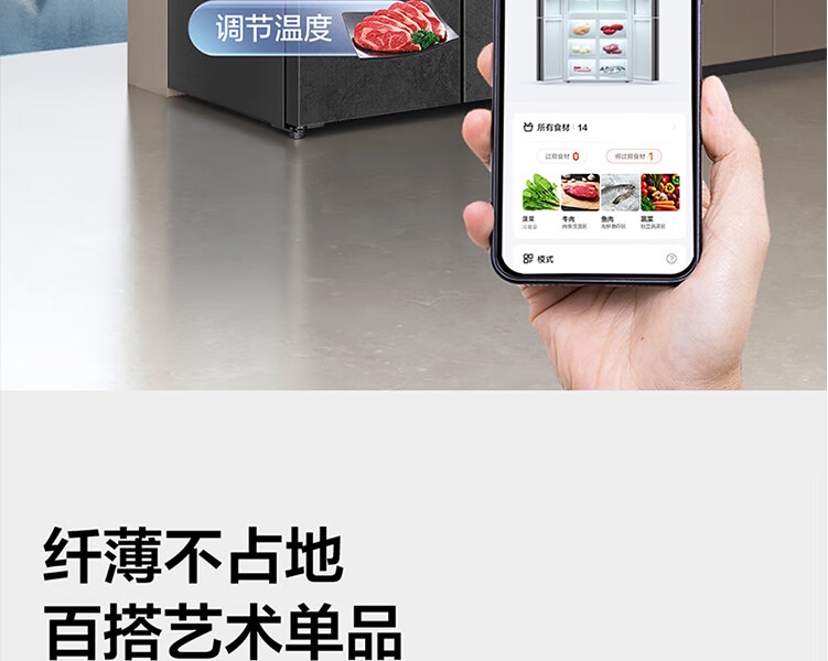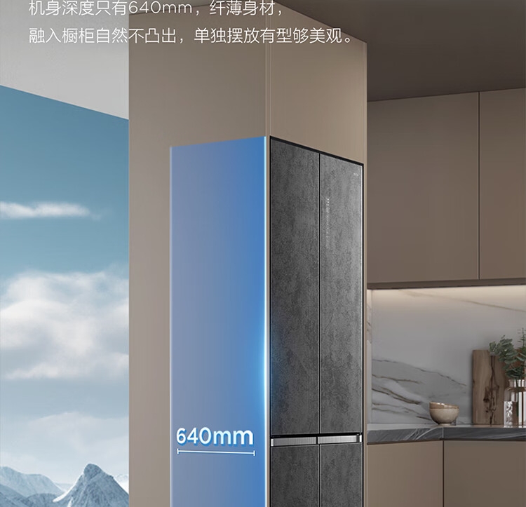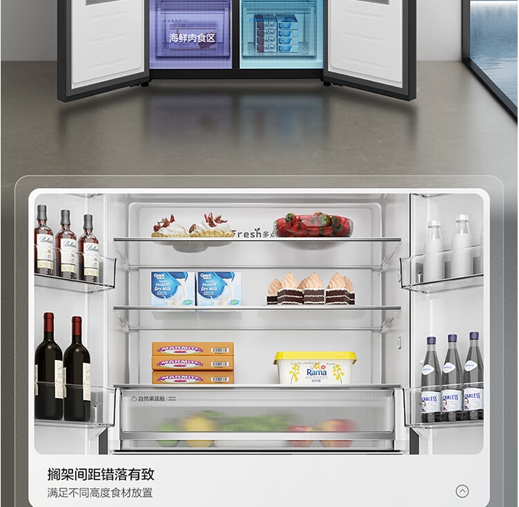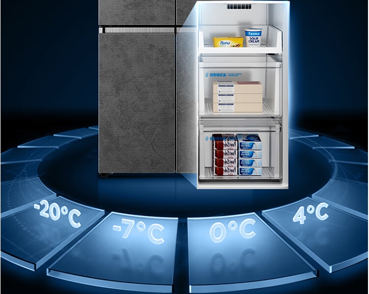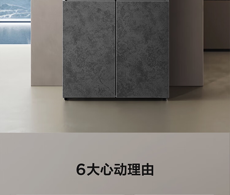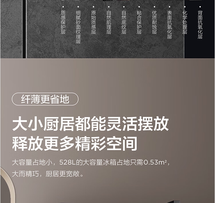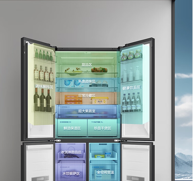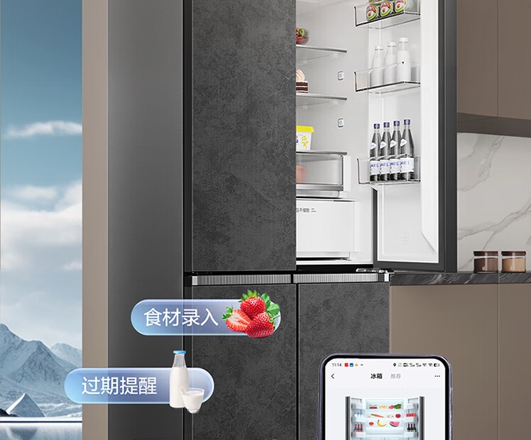 TCL528(912696)升纤薄系列十字对开四门变频电冰箱 640mm超薄机身 多点离子杀菌 云岩灰玻璃面板 R528P8-U